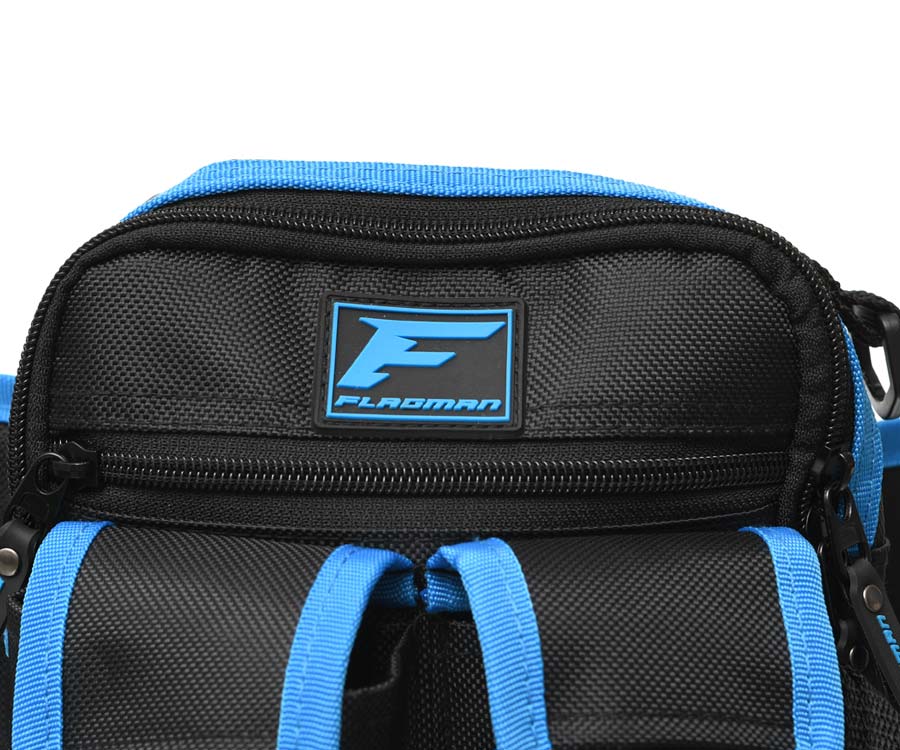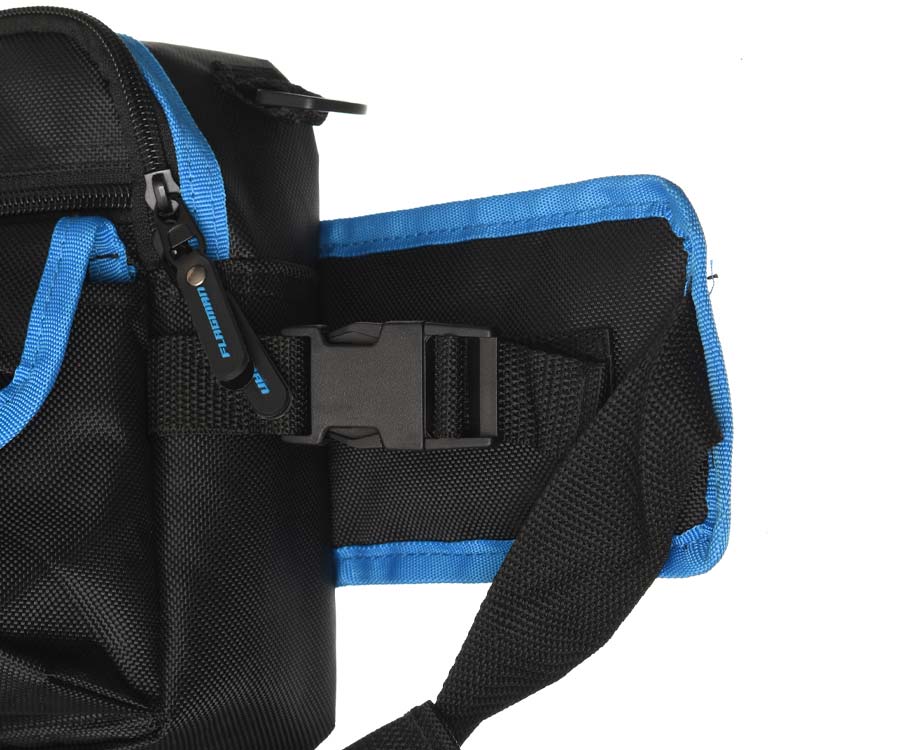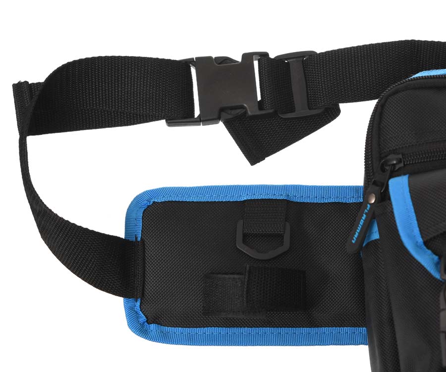 Риболовна сумка Flagman Belt Bag – зручна та досить містка поясна сумка зі знімною кишенею для пляшки, яка виготовлена з міцної прогумованої тканини. Flagman Belt Bag чудово захищає рибальське спорядження від водяних бризок і дощу. Її оснащено двома зовнішніми кишенями для дріб'язку та інструментів на застібках типу Fastex і великою фронтальною кишенею на блискавці. Містке внутрішнє відділення закривається на блискавку. У ньому ідеально розмістяться риболовні коробки з приманками, витратні матеріали та аксесуари, а також інше потрібне на риболовлі спорядження. Для транспортування сумки поясної Flagman Belt Bag використовують зручний регульований пояс із надійною застібкою Fastex. У комплекті знімна кишеня-чохол для пляшки з водою або невеликого термоса.