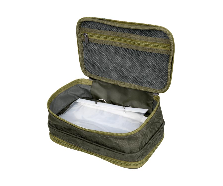 Сarp Pro Diamond CPLD5395 – невелика сумка-повідочниця для коропових повідців і термінальних снастей. Її вироблено з унікального фірмового вологостійкого камуфльованого матеріалу Сarp Pro (Oxford 650D). Має продуману компактну конструкцію, закривається на двосторонні блискавки. Має два відділення. В одному з них міститься повідочниця з EVA для коропових повідців та кишеня на блискавці для зберігання аксесуарів. У другому – пластикові файли для зберігання термінальних снастей і дрібних аксесуарів, а також сітчастий карман на блискавці. Завдяки вставкам із м'якого пористого матеріалу органайзер Сarp Pro Diamond CPLD5395 забезпечує прекрасний захист вмісту. Надійні та довговічні блискавки оснащено бігунками зі зручними в роботі прогумованими пулерами.