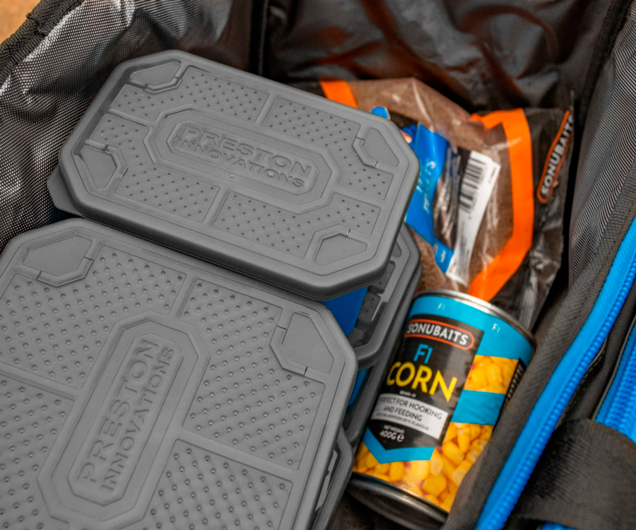 Компактна сумка для приманок Preston Supera x Bait із величезним простором для зберігання! Ця сумка для приманки з трьома зовнішніми кишенями є компактним рішенням для зберігання приманки та аксесуарів. Ця сумка з підкладкою з термофольги була розроблена для того, щоб ваша наживка залишалася прохолодною та свіжою, а також забезпечувала легкість чищення.