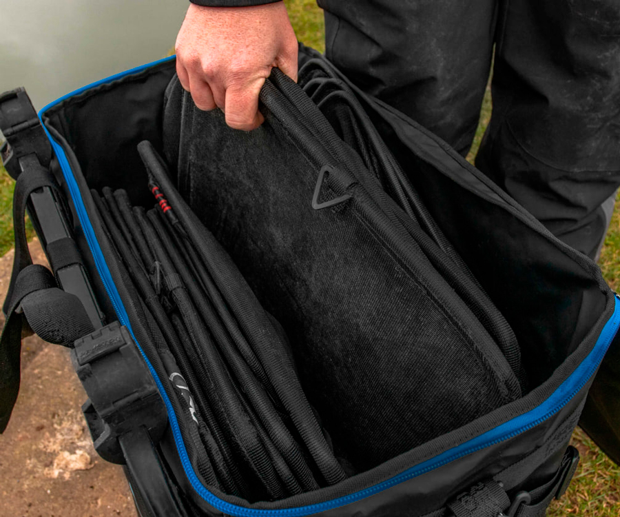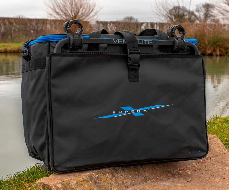 Сумка Preston Supera x Net XL, розрахована на розміщення до 5 сіток, відповідає вимогам сучасного професійного рибалки. Завдяки низькому профілю ця сітчаста сумка залишається компактною, незважаючи на величезну кількість внутрішнього місця для зберігання. Герметичний водонепроникний вкладиш запобігає потраплянню води. Зовнішня кишеня дозволяє зберігати бічні підноси або обручі для відер.