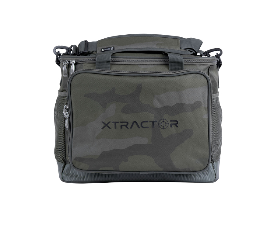 Практична й універсальна сумка Xtractor Bait & Tackle Bag вмістить усі ваші приманки та снасті для короткої або тривалої риболовлі. Має передню кишеню на блискавці та дві бічні сітчасті кишені й виготовлена з міцного камуфляжного матеріалу HD 600D Bank-Tek. Оснащена знімним плечовим ременем і водонепроникним дном.