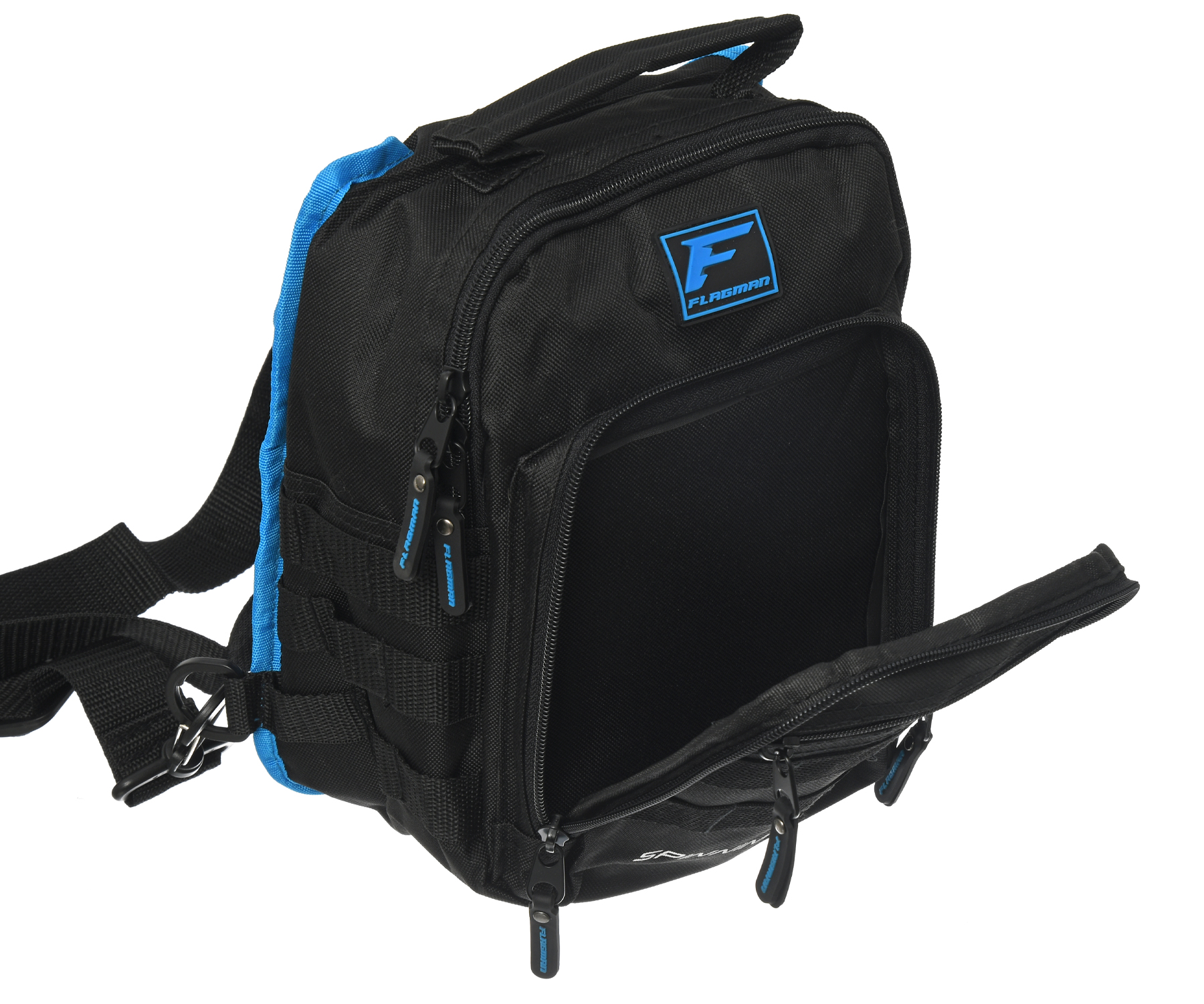 Сумка Flagman Spin Bag 8 – зручна та досить містка розвантажувальна сумка для зберігання і транспортування коробок із приманками, рибальського спорядження та іншого обладнання під час активної риболовлі. Для перенесення має регульовану наплічну лямку з м'якою накладкою. Виготовлена з міцної зносостійкої тканини Oxford 600D із водовідштовхувальними властивостями. Сумка чудово захищає вміст від водяних бризок і механічних ушкоджень. Модель Flagman Spin Bag 8 має містке основне відділення та накладну фронтальну кишеню на двосторонніх блискавках. Крім того, у конструкції передбачено невелику зовнішню кишеню на блискавці, а також петлі для навісного обладнання системи Molle. Для транспортування сумки Flagman Spin Bag FSB8 використовують ручку й наплічну лямку. Розміри: 20х13х25 см.