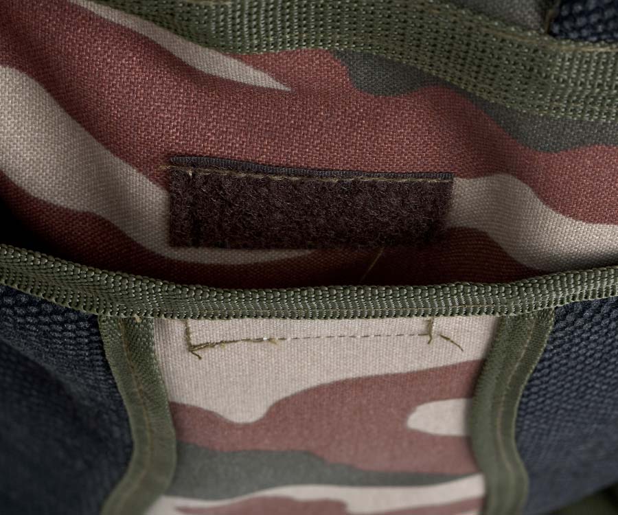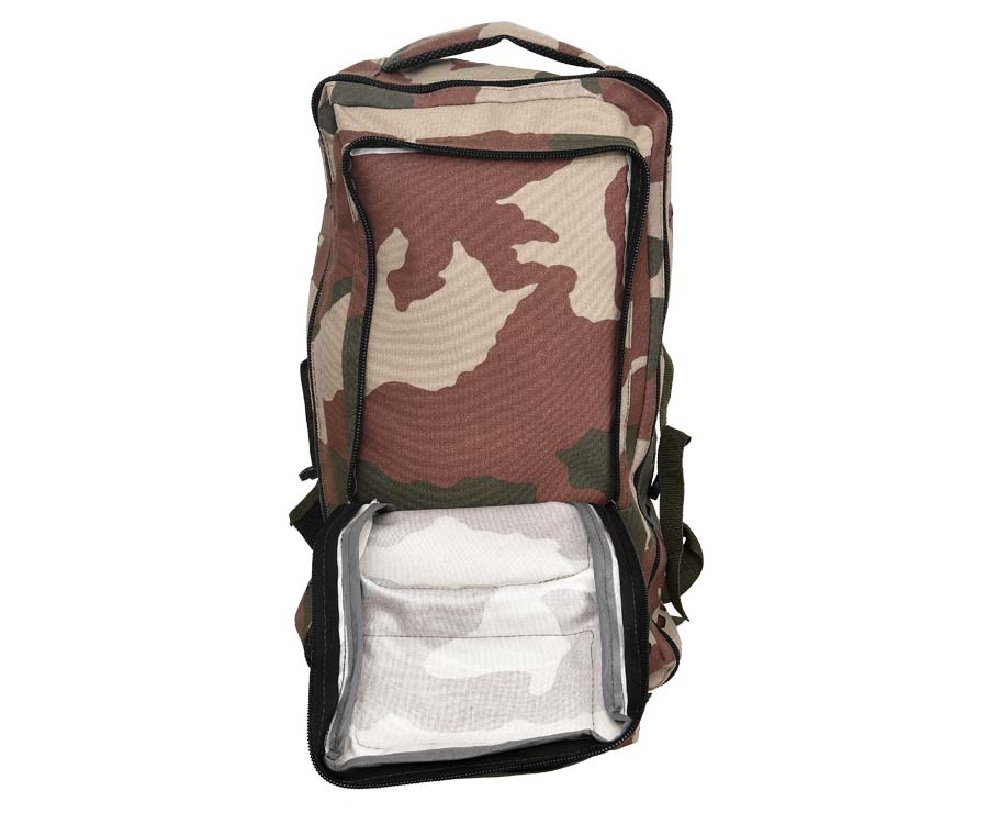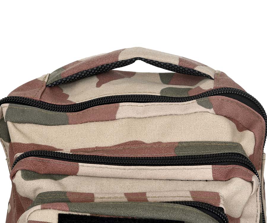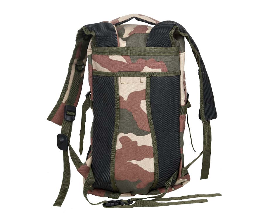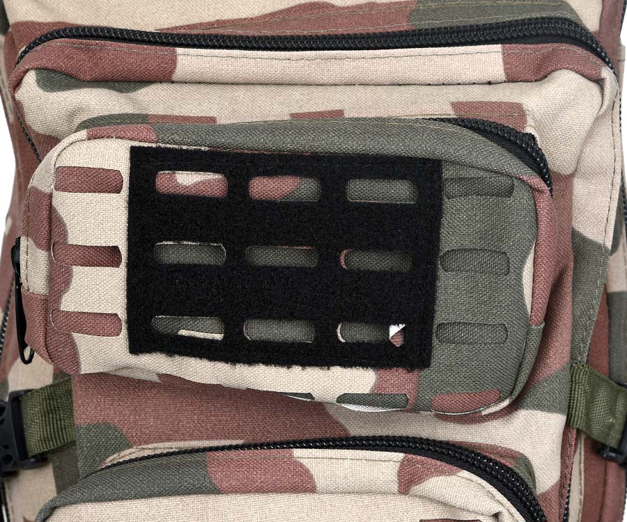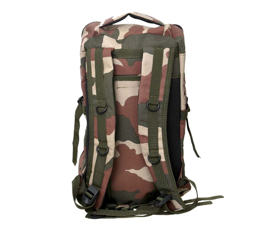 Одноденний тактичний рюкзак, який виготовлено з міцного зносостійкого камуфляжного матеріалу Oxford 600 D. З країв спинки рюкзака розміщено підкладку із сітчастого матеріалу, внутрішню частину плечових лямок також виконано із сітки, завдяки чому покращується циркуляція повітря та знижується потовиділення. Наплічні лямки мають ергономічну форму та регулюються за довжиною. На лямках встановлено чотири D-подібних кільця. Рюкзак має модульну систему, що дозволяє закріплювати додаткове обладнання до передніх відділень та боків. Попереду розташовано два відділення (кишені) для аксесуарів із нашитими на них стрічками-липучками, які дають можливість навішувати на рюкзак додаткове спорядження з інтерфейсом Molle. Два основні відділення – середнє та велике – дають змогу максимально зручно розмістити необхідні речі, раціонально використовуючи внутрішній простір рюкзака. З боків та знизу передбачено регульовані компресійні ремені для збільшення/зменшення місткості рюкзака. Крім того, є регульований поясний ремінь із защібкою, а у верхній частині – ручка для перенесення.