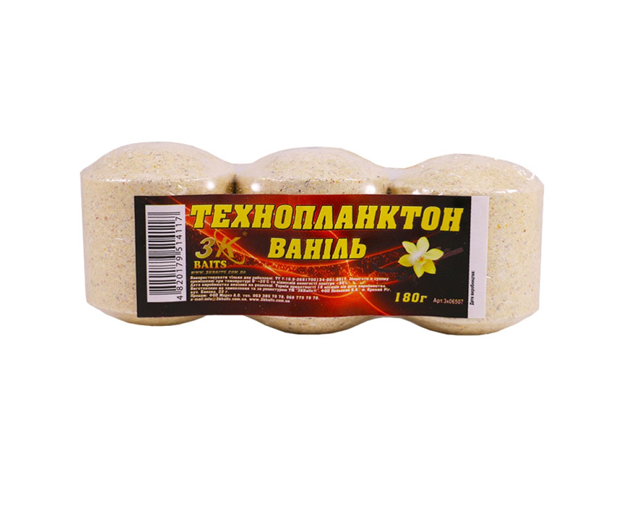Технопланктон (водорості) ТМ 3KBaits — це брикети класичної циліндричної форми, які використовуються як підгодівля для ловлі великої білої риби, зокрема товстолоба, коропа і амура. Технопланктон складається з щільно спресованої дрібної поживної суміші і при попаданні у воду починає розчинятися, створюючи ефект розпорошення. Хмара технопланктону, що порошить, притягає рибу з великих відстаней і утримує її в зоні ловлі до моменту повного розчинення.
