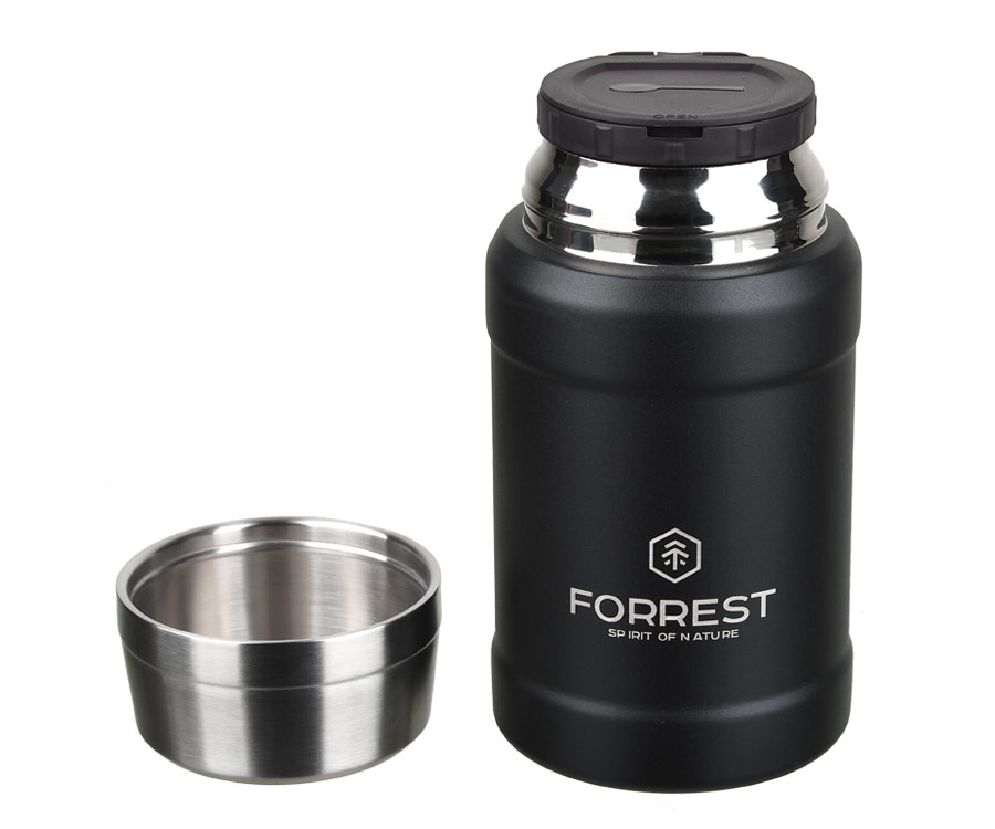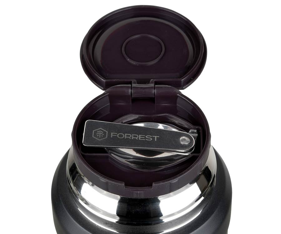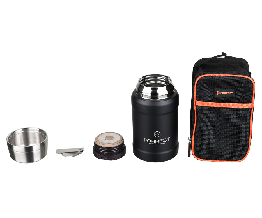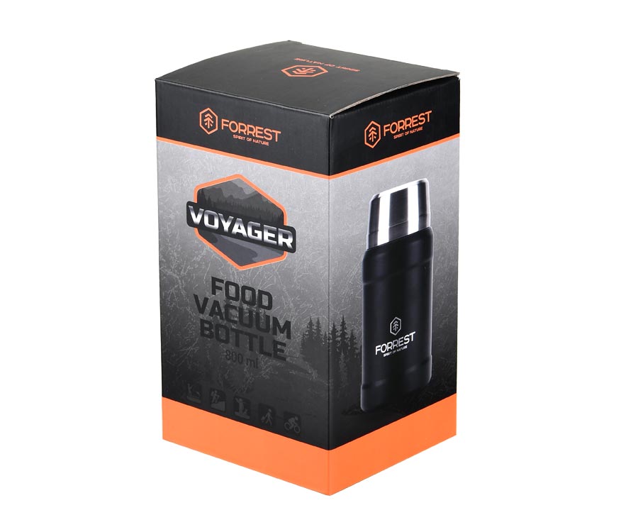 Forrest Food Vacuum Bottle – надійний і незамінний супутник риболова, мисливця та мандрівника. Термос для їжі обладнано вакуумною колбою з нержавіючої сталі, що робить його міцним і надійним. Forrest Food Vacuum Bottle має сучасний стильний дизайн із матовим порошковим покриттям. Його укомплектовано спеціальною термоізольованою кришкою, яку можна використовувати як тарілку, і складаною ложкою з нержавіючої сталі. Ложку в складеному стані розміщено в спеціальному відділенні верхньої частини пробки термоса. Завдяки подвійній стінці термос довго зберігає температуру як гарячих, так і холодних страв. Виготовлений із легкої та міцної харчової неіржавкої сталі. Має зручну пластикову пробку. Легко миється зсередини. Завдяки своїй формі термос Forrest Food Vacuum Bottle без проблем можна розмістити в рюкзаку або сумці. Під час виробництва використовують тільки високоякісні, екологічно безпечні матеріали. У комплекті термочохол із кишенею та ручкою для перенесення.