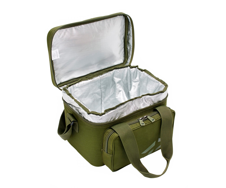 Daiwa Black Widow Cool Bait Bag – легка і практична термосумка для зберігання продуктів харчування та приманок, яка ідеально підійде для коротких виїздів на риболовлю. Її виготовлено з міцних зносостійких матеріалів із високою термоізоляцією. Основне відділення повністю ізольоване і зберігає прикормку, насадки та їжу за потрібної температури. У великій передній кишені достатньо місця для документів, столового приладдя тощо. Термосумку Daiwa Black Widow Cool Bait Bag оснащено наплічним ременем із м'якою накладкою та ручками для перенесення. Розміри: 36х29х24 см.