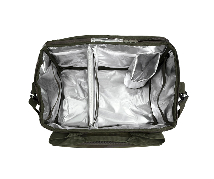 Термосумки Sonik Bank-Tek розроблено для максимальної ефективності, вони мають безліч корисних функцій, щоб зберегти ваші приманки і продукти холодними на березі. Вони оснащені унікальною кишенею для зберігання тостера/сковорідки, збільшеною теплоізоляцією в основі та переміщуваним роздільником на липучці, щоб ви могли зберігати заморожені та холодні продукти окремо. Подвійна застібка-блискавка забезпечує доступ збоку або з торця, а внутрішні гумки чудово підходять для утримання морозильних блоків або пляшок у вертикальному положенні. У передній кишені є гумки для посуду, а також дві зручні бічні сітчасті кишені для зберігання. Є міцне водонепроникне дно і знімний плечовий ремінь.