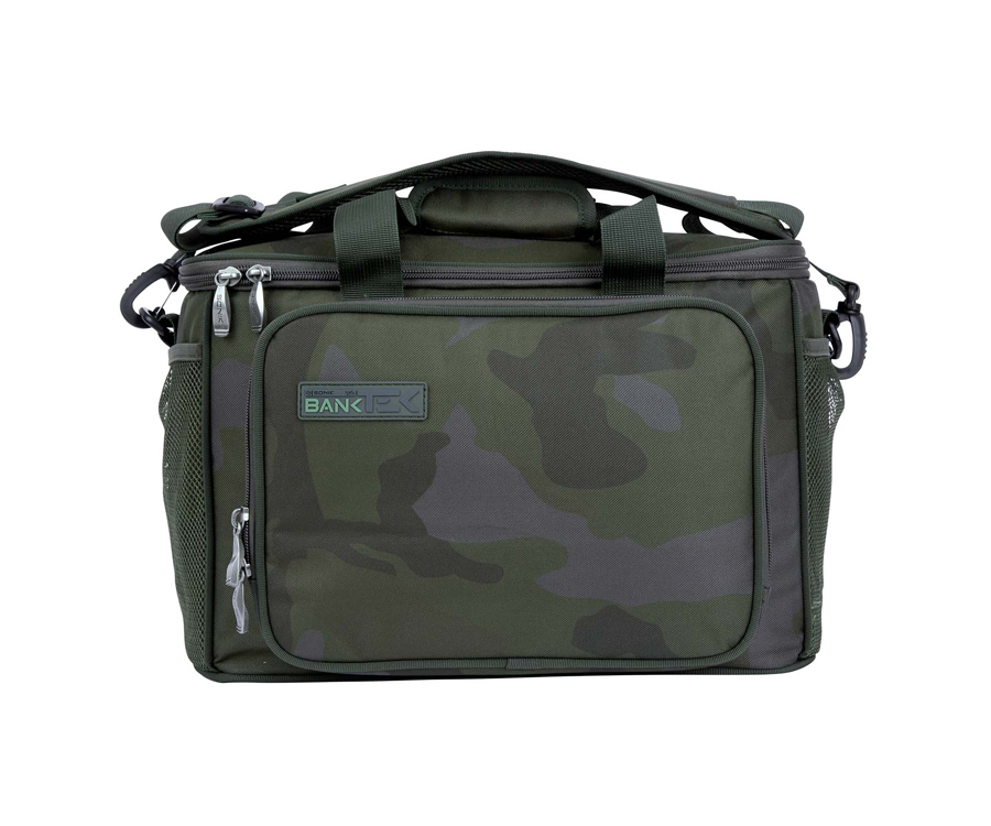 Термосумки Sonik Bank-Tek розроблено для максимальної ефективності, вони мають безліч корисних функцій, щоб зберегти ваші приманки і продукти холодними на березі. Вони оснащені унікальною кишенею для зберігання тостера/сковорідки, збільшеною теплоізоляцією в основі та переміщуваним роздільником на липучці, щоб ви могли зберігати заморожені та холодні продукти окремо. Подвійна застібка-блискавка забезпечує доступ збоку або з торця, а внутрішні гумки чудово підходять для утримання морозильних блоків або пляшок у вертикальному положенні. У передній кишені є гумки для посуду, а також дві зручні бічні сітчасті кишені для зберігання. Є міцне водонепроникне дно і знімний плечовий ремінь.