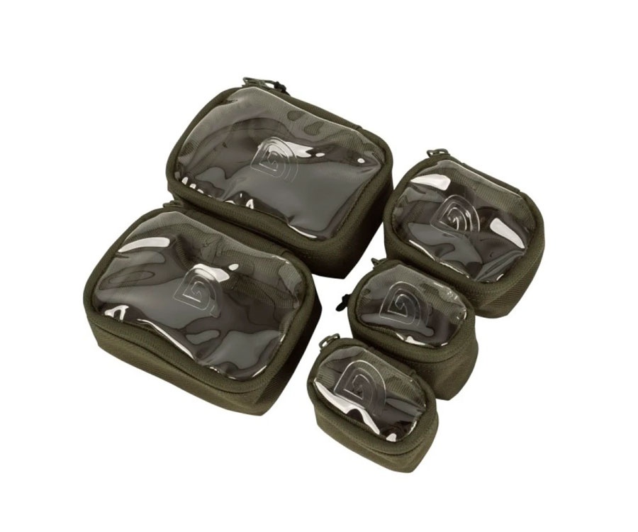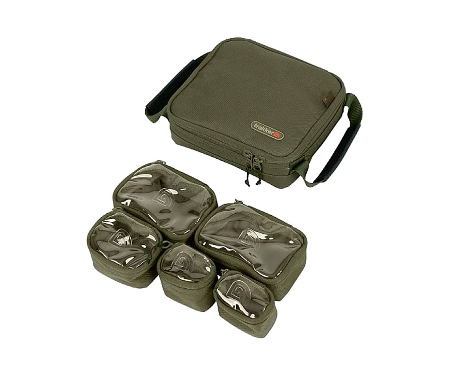 Trakker NXG Modular Lead Pouch System — це винятково добре продуманий набір для корополовів, які цінують ідеальну організацію та мобільність. Головна сумка вміщує п'ять менших чохлів з прозорою кришкою, які дозволяють розсортувати грузила або інші коропові аксесуари за розміром, типом або призначенням. Кожен з внутрішніх чохлів оснащений блискавкою і прозорою кришкою, що дозволяє швидко розпізнати вміст без необхідності відкривання.