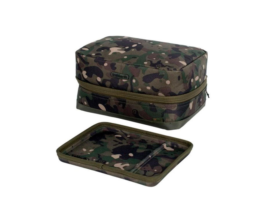 Trakker NXC Camo Rig-R Box — це бокс, який дозволить зберігати всі дрібні аксесуари для в'язання комплектів чи поводків для коропів. Цей універсальний чохол дозволяє зберігати коробку для аксесуарів та інші необхідні елементи, потрібні для лову коропів. Оснащений унікальним магнітним лотком EVA, який закріплений до зовнішньої кришки за допомогою чотирьох магнітів, розташованих у кутах лотка. Цей лоток також може використовуватися всередині чохла або повністю незалежно, що підвищує його функціональність.