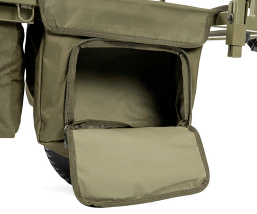 Триколісний візок Avid Carp Transit Extreme Extreme 3 Wheel Barrow має низку інноваційних функцій, які зроблять транспортування ваших снастей простішим, ніж будь-коли раніше. Бічні перекладини зі змінною висотою дають змогу з легкістю завантажувати та вивантажувати снасті, водночас забезпечуючи кілька різних варіантів завантаження. Два широких задніх колеса дають змогу легко перевозити важкі вантажі на великі відстані. У візку Transit Extreme 3 Wheel Barrow передбачено три сумки з легким доступом під міцною водонепроникною кришкою. Дві сумки у вигляді кишень розташовано по обидва боки від переднього колеса та одну велику центральну сумку в задній частині візка. Центральну сумку можна швидко зняти, відкрити, закрити за допомогою простої застібки, що дає змогу зберігати в ній речі першої необхідності. У передній частині візка є висувна передня полиця з двома регульованими кріпильними пасками для перевезення найважчих предметів, таких як відра з прикормкою і крісла. Ручки візка регулюються. Ручки, передня полиця і колеса повністю знімаються, тому для транспортування візок розкладається до плаского стану та не займає багато місця у вашому багажі.