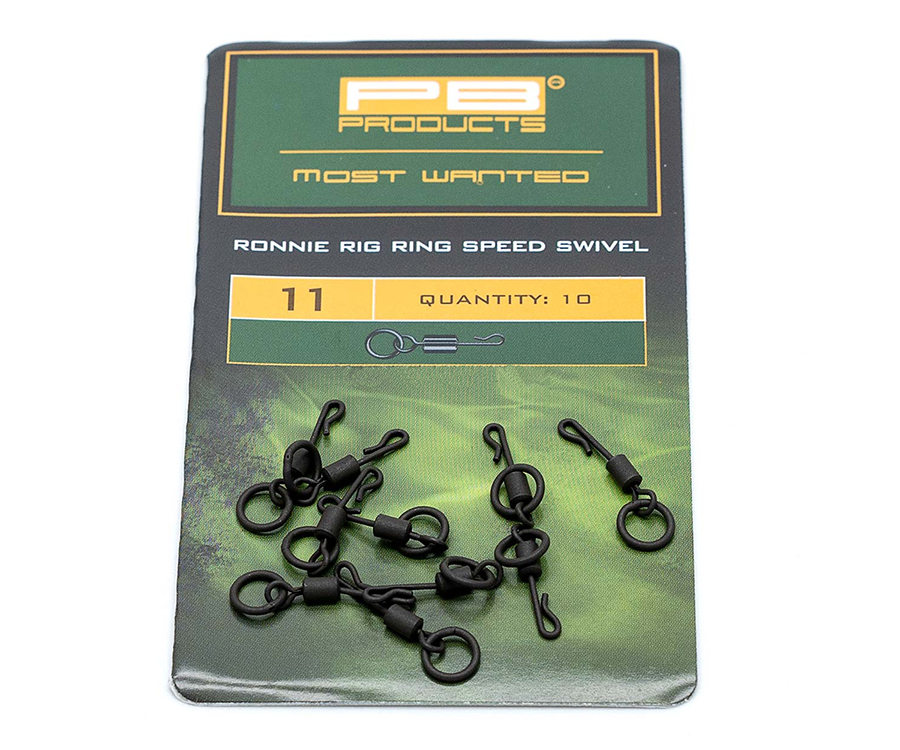 PB Products Ronnie Rig Swivel – надійний вертлюг зі швидкознімним з’єднанням (Quick Change) і кільцем. Судячи з назви, ці вертлюги призначено для виготовлення монтажу Ronnie Rig. Шарнірне кільце забезпечує більш натуральну подачу приманки, а завдяки застібці Quick Change можна легко замінити повідець, не розбираючи монтажу. Розмір вертлюга: №11. Діаметр кільця: 5 мм. Упаковка: 10 шт.