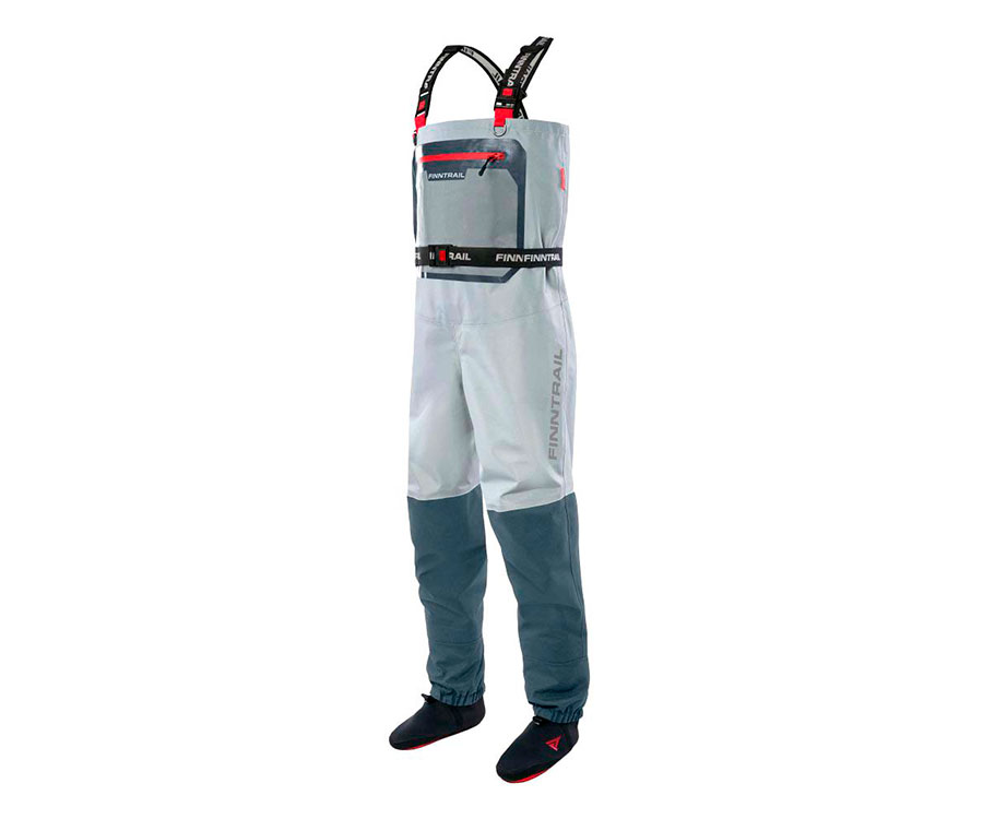 Вейдерси Finntrail Greenwood 1533 Grey універсальна полегшена модель, злита з неопреновими носками. Оснащена місткою зовнішньою накладною кишенею з вологозахисною блискавкою. Нижня частина вейдерсів посилена міцною п’ятишаровою тканиною з мембраною HARD-TEX. Коліна мають 3D форму і не обмежують в рухах. Вейдерси оснащені додатковим затягуванням на грудях для запобігання попадання води, зовнішньою кишенею з вологозахисною блискавкою і внутрішньою кишенею, додатковими D-подібними кільцями і міцними петлями для просушування, еластичними підтяжками і ременем з логотипом FINNTRAIL на замку YKK Всі шви і блискавки герметично проклеєні.