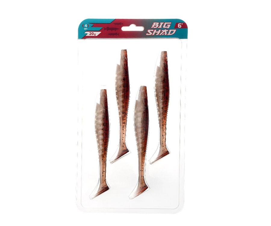 Flagman Big Shad 6" – великий віброхвіст подовженої форми, який виготовлено з м'якого силікону. Тіло приманки сплющено з боків, зверху і знизу є спеціальні прорізи, що оптимізують використання Flagman Big Shad з офсетним гачком. Завдяки об'ємній п'яті віброхвіст починає грати навіть за найповільнішого проведення. Гра його легка й розмашиста. Коливання хвоста передаються на тіло, завдяки чому приманка розгойдується під час проведення та приваблює хижака з великих відстаней. На тілі Big Shad є спеціальні насічки, які створюють привабливу для хижака турбулентність. Приманка відмінно працює на класичній джиг-голівці, шарнірному монтажі, штопорі. Модель чудово підійде для ловлі трофейного судака, щуки та сома. Трофейній рибі – велика приманка, – це якраз про Flagman Big Shad!