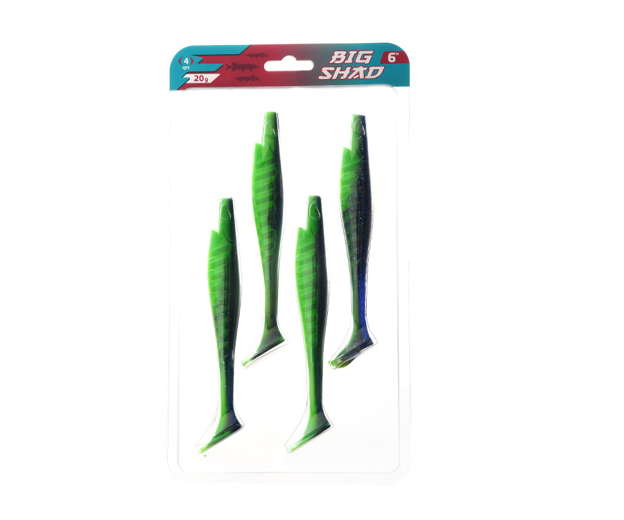 Flagman Big Shad 6" – великий віброхвіст подовженої форми, який виготовлено з м'якого силікону. Тіло приманки сплющено з боків, зверху і знизу є спеціальні прорізи, що оптимізують використання Flagman Big Shad з офсетним гачком. Завдяки об'ємній п'яті віброхвіст починає грати навіть за найповільнішого проведення. Гра його легка й розмашиста. Коливання хвоста передаються на тіло, завдяки чому приманка розгойдується під час проведення та приваблює хижака з великих відстаней. На тілі Big Shad є спеціальні насічки, які створюють привабливу для хижака турбулентність. Приманка відмінно працює на класичній джиг-голівці, шарнірному монтажі, штопорі. Модель чудово підійде для ловлі трофейного судака, щуки та сома. Трофейній рибі – велика приманка, – це якраз про Flagman Big Shad!