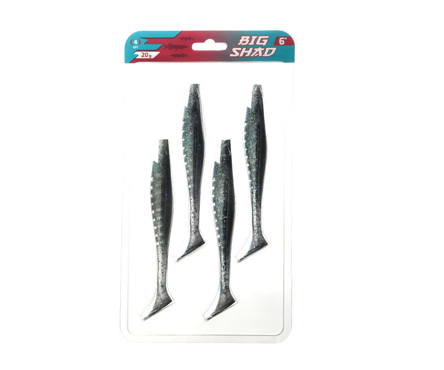 Flagman Big Shad 6" – великий віброхвіст подовженої форми, який виготовлено з м'якого силікону. Тіло приманки сплющено з боків, зверху і знизу є спеціальні прорізи, що оптимізують використання Flagman Big Shad з офсетним гачком. Завдяки об'ємній п'яті віброхвіст починає грати навіть за найповільнішого проведення. Гра його легка й розмашиста. Коливання хвоста передаються на тіло, завдяки чому приманка розгойдується під час проведення та приваблює хижака з великих відстаней. На тілі Big Shad є спеціальні насічки, які створюють привабливу для хижака турбулентність. Приманка відмінно працює на класичній джиг-голівці, шарнірному монтажі, штопорі. Модель чудово підійде для ловлі трофейного судака, щуки та сома. Трофейній рибі – велика приманка, – це якраз про Flagman Big Shad!