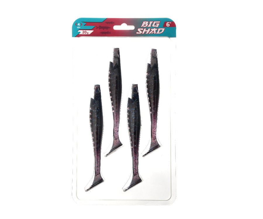 Flagman Big Shad 6" – великий віброхвіст подовженої форми, який виготовлено з м'якого силікону. Тіло приманки сплющено з боків, зверху і знизу є спеціальні прорізи, що оптимізують використання Flagman Big Shad з офсетним гачком. Завдяки об'ємній п'яті віброхвіст починає грати навіть за найповільнішого проведення. Гра його легка й розмашиста. Коливання хвоста передаються на тіло, завдяки чому приманка розгойдується під час проведення та приваблює хижака з великих відстаней. На тілі Big Shad є спеціальні насічки, які створюють привабливу для хижака турбулентність. Приманка відмінно працює на класичній джиг-голівці, шарнірному монтажі, штопорі. Модель чудово підійде для ловлі трофейного судака, щуки та сома. Трофейній рибі – велика приманка, – це якраз про Flagman Big Shad!