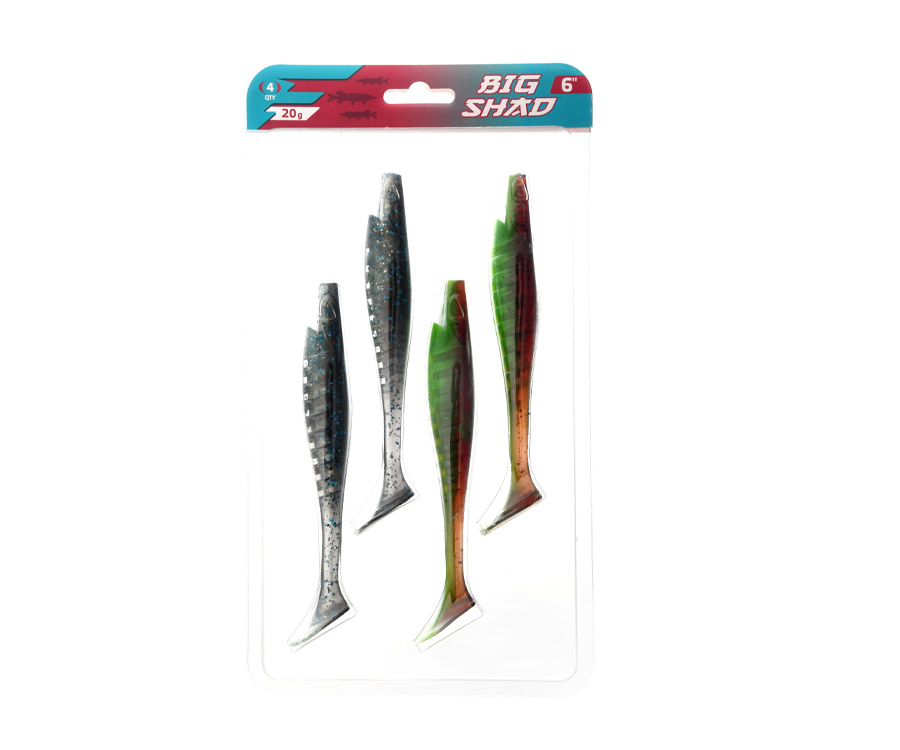 Flagman Big Shad 6" – великий віброхвіст подовженої форми, який виготовлено з м'якого силікону. Тіло приманки сплющено з боків, зверху і знизу є спеціальні прорізи, що оптимізують використання Flagman Big Shad з офсетним гачком. Завдяки об'ємній п'яті віброхвіст починає грати навіть за найповільнішого проведення. Гра його легка й розмашиста. Коливання хвоста передаються на тіло, завдяки чому приманка розгойдується під час проведення та приваблює хижака з великих відстаней. На тілі Big Shad є спеціальні насічки, які створюють привабливу для хижака турбулентність. Приманка відмінно працює на класичній джиг-голівці, шарнірному монтажі, штопорі. Модель чудово підійде для ловлі трофейного судака, щуки та сома. Трофейній рибі – велика приманка, – це якраз про Flagman Big Shad!