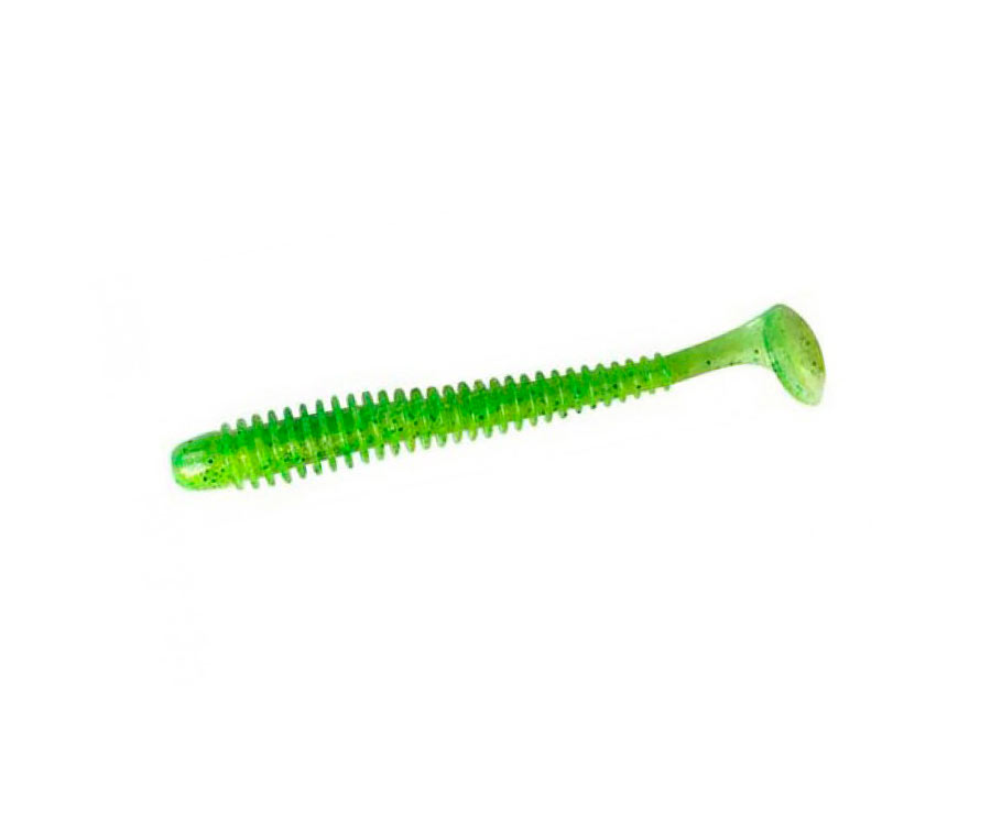 Swing Impact - віброхвіст з подовженим ребристим тілом. Приманка має оригінальну форму оребрення, що робить її гру більш активною. Приманка дуже рухлива, включається в гру вже при повільній проводці. Ребра на тілі приманки створюють додаткові коливання в воді, залучаючи хижака з великої відстані. Swing Impact виготовлений з дуже м'якого «їстівного» силікону, просоченого атрактантом. Віброхвіст відрізняється від менших наявністю прорізі для офсетного гачка. Swing Impact можна використовувати як на джиг-голівці, так і на шарнірному монтажі з офсетним гачком.