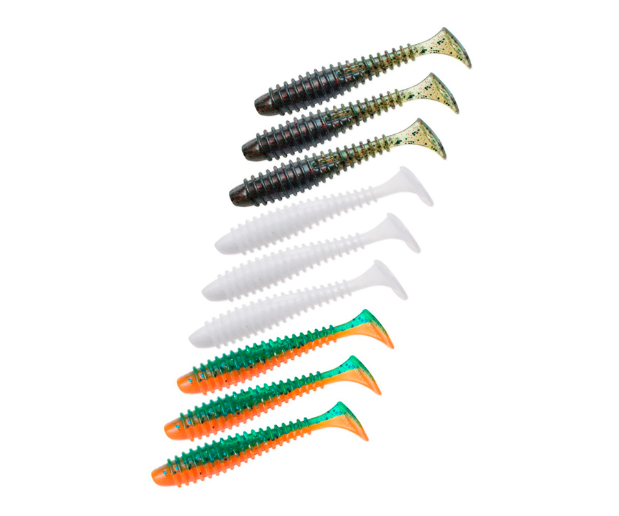 Виброхвост Fat PT 2" предназначен для ловли небольшой щуки, судака и окуня. В прилове часто попадаются разнообразные рыбы из-за антропометрического сходства этой приманки с бычком небольшого "аппетитного" размера. Эффективность Fat PT обеспечивает короткое толстое тело, прекрасно привлекающее хищников своим объемом и массой. Широкий хвостовой пятак вызывает сильную вибрацию, которая передается на тело приманки и колеблет его во время проводки. Материал приманки очень мягкий поэтому хвост заводится при наименьшей скорости на весе головок от 1 г. На теле приманки есть прорези для оснащения двойным крючком. Fat PT 2" прекрасно подойдет для любых типов монтажей, начиная с обычной джиг-головки, заканчивая разнесенными оснастками с применением офсетного крючка для ловли в траве или в коряжнике. А одинарный крючок или же двойник на шарнирном монтаже – самое простое и уловистое решение для этой активной приманки. Соль в животе приманки стабилизирует ее положение в воде на невесомых монтажах и повышает ее привлекательность для рыбы. В материал добавлен 100% натуральный аттрактант со вкусом кальмара и креветки. Для сохранения правильной формы приманки размещены в компактной блистерной упаковке.