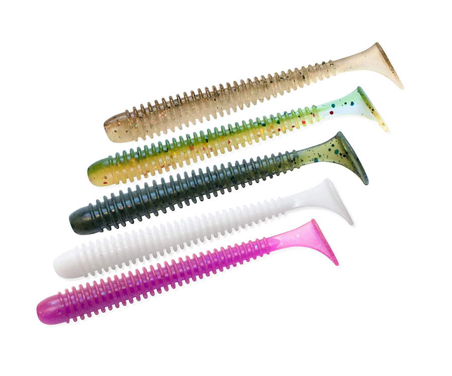 Матеріл приманки дуже м’який тому хвост заводиться на найменшій швидкості та на вазі грузів від 1г. Сіль в нижній частині приманки стабілізує її на проводці та утримує тіло приманки в правильному положенні у воді.