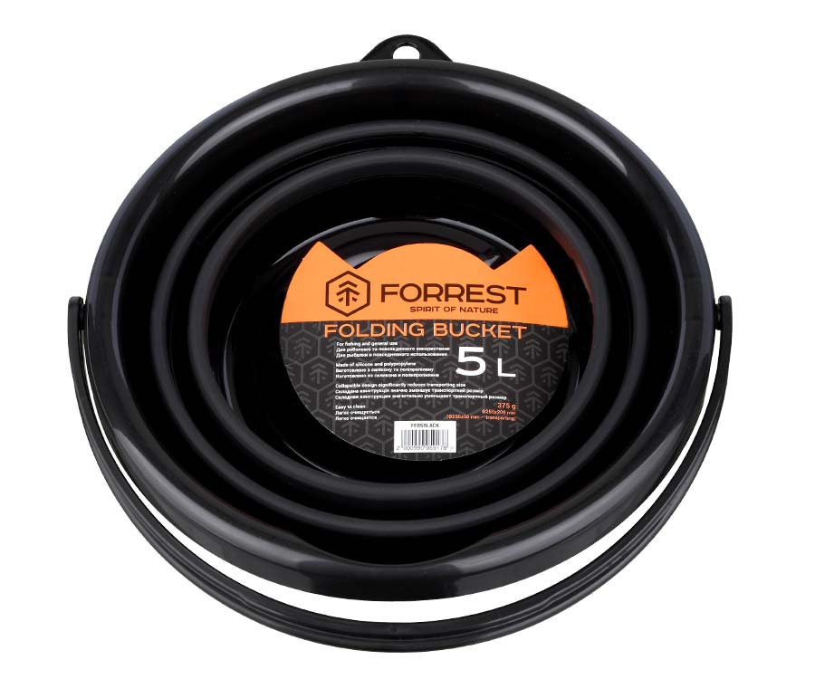 Forrest Folding Bucket FFB5 – силіконове відро місткістю 5 л, яке завдяки ребрам жорсткості легко складається/розкладається й займає мінімум місця. Це ідеальний варіант для риболовів, грибників, туристів, автомобілістів, дачників тощо. Складане відро Forrest Folding Bucket виготовлено з безпечного для здоров’я силікону. Його можна використовувати для збирання фруктів, ягід, грибів. На риболовлі силіконове відро Forrest Folding Bucket підійде, щоби зачерпнути воду з водойми, замісити прикормку, утримувати живців, транспортувати рибу. Оснащено надійною пластиковою ручкою. Випускається в декількох варіантах кольору.