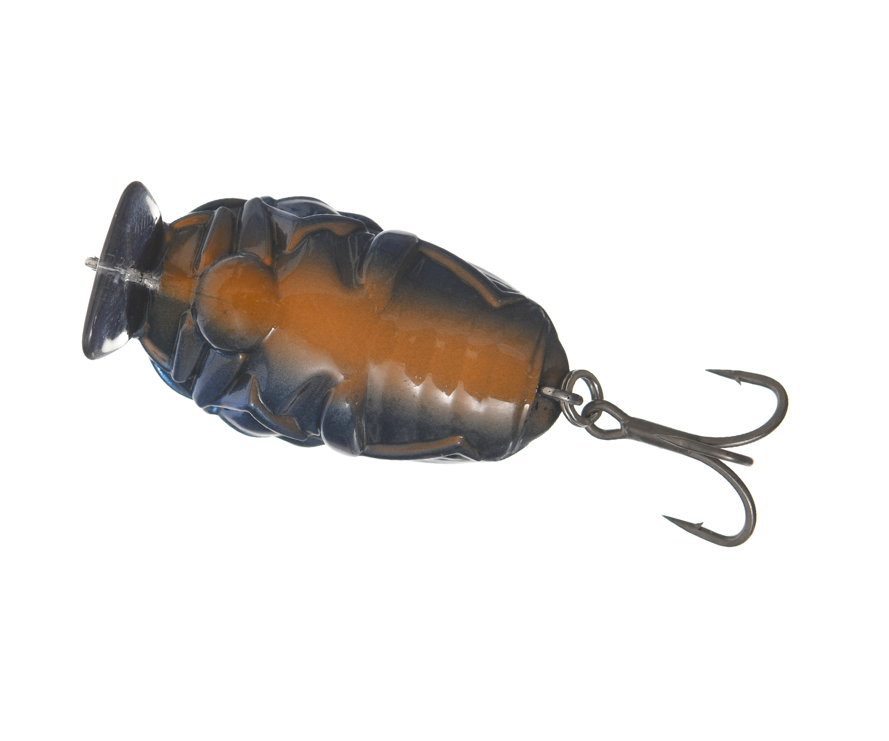 Воблер Azura Bug Crank 36F 4,0 г. Ця приманка своїм зовнішнім виглядом дуже нагадує жуків, які час від часу опиняються на поверхні водойми й підхоплені течією активно рухаються в приповерхневих шарах води. Воблер Bug Crank 36F дуже гарно себе зарекомендував як на водоймах із течією, де його атакують головень та білизна, так і в так званих «жабовниках», де його активну гру дуже високо оцінила щука. Окрім цього, вам варто бути готовим до того, що атака відбувається майже одразу після приводнення кренка Azura Bug Crank 36F на поверхню води – доки «жук» не полетів геть.