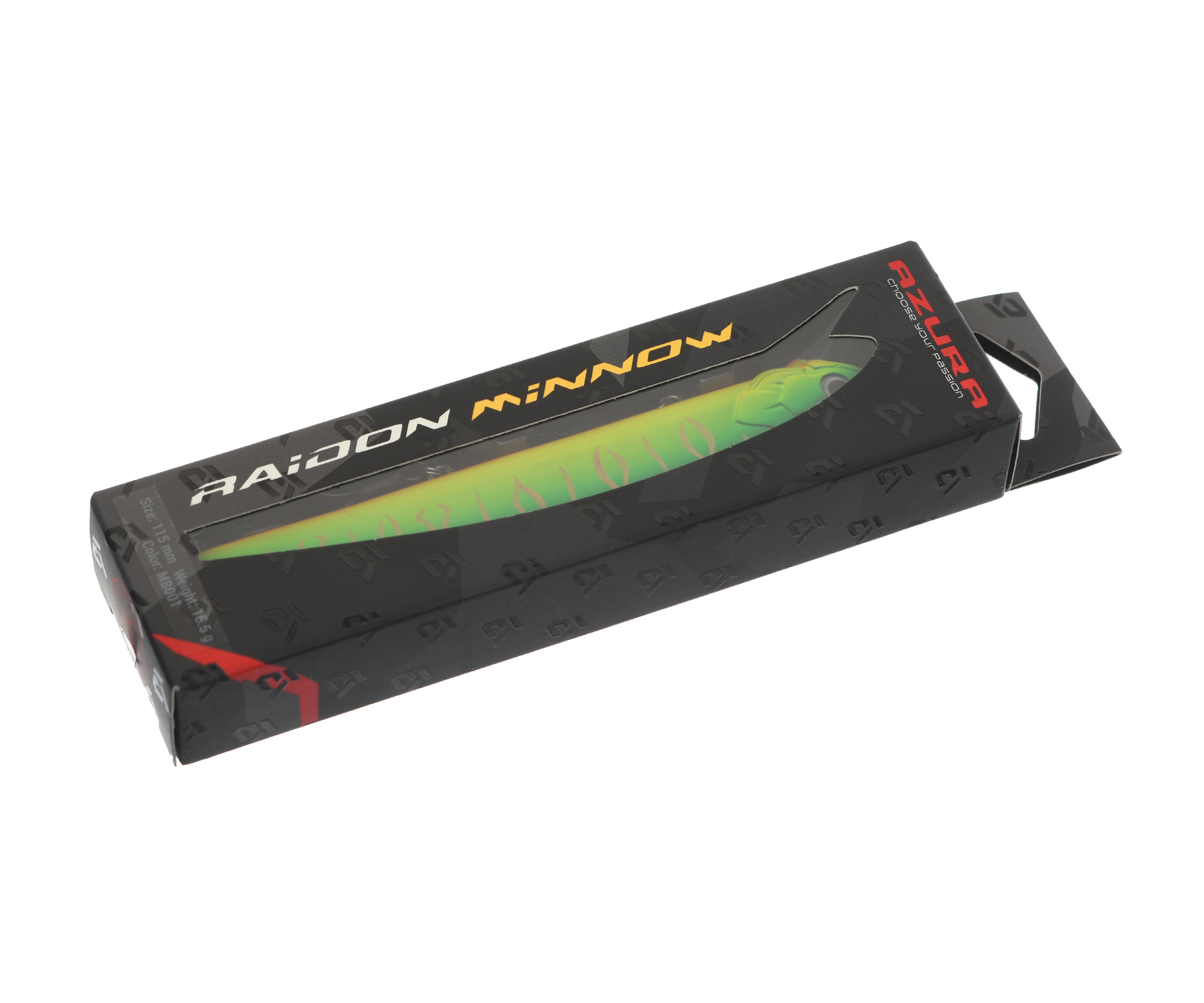 Воблер Azura Raidon Minnow 115SF – це саме та приманка, яку ви берете на риболовлю не знаючи, в яких умовах опинитесь. Воблер має хоч і позитивну плавучість, але робить це досить повільно, тим самим додатково провокуючи хижака на атаку. Окремої уваги заслуговує гра Azura Raidon Minnow. Яскраво виражений воблінг просто зачаровує своєю амплітудою та швидкістю реагування на маніпуляції спінінгіста. У разі потреби сповільнити швидкість подачі, Raidon Minnow дає змогу вам «малювати ялинку» буквально на одному місці, а яскрава та оригінальна гамма кольорів здатні задовольнити будь-які вимоги та забаганки.