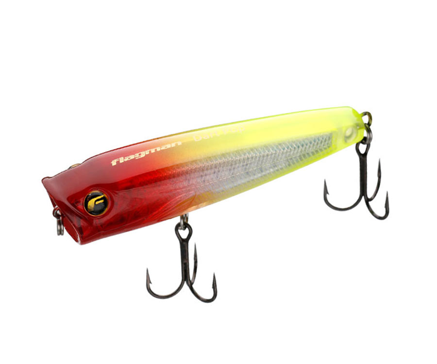 Flagman Dart Pop – невеликий попер завдовжки 65 мм і вагою 7 г. Тіло приманки вирізняється відносно витягнутими пропорціями. Гра яскраво індивідуальна. Попер не стільки булькає, скільки хлюпається, пускаючи справжні фонтани бризок у різні боки, однак шуму від цього виникає не надто багато. Та головне - він рухається не прямолінійно, а відхиляється в бік під час кожного ривка – це дуже нагадує проведення Walking The Dog. Тобто, по суті, Dart Pop поводиться як гібрид стік-бейта та попера. Приманку з таким характером рухів обов'язково потрібно мати в коробці: окунь і жерех, основні об'єкти поверхневої ловлі, бувають дуже вибагливими й нерідко віддають перевагу приманкам саме такого типу. Розмір попера Flagman Dart Pop є універсальним і чудово приваблює рибу як на просторах водосховищ, так і на невеликих озерах.