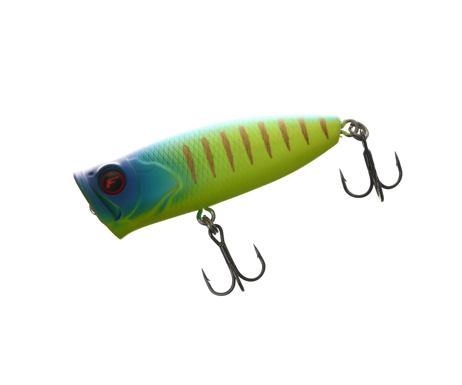 Воблер Flagman Pop-n-Walk – класичний представник сімейства top water, уловистий попер, призначений для ловлі різнорозмірних окуня та щуки як у стоячій воді, так і на водоймах із течією. Під час ривкового проведення попер утворює характерні сплески і «шльопи» на поверхні води, імітуючи окунька, який полює на дрібноту, або невелику рибку, яка вистрибує за комахою, провокуючи хижаків на атаку. Поппер Flagman Pop-n-Walk чудово працює на різних швидкостях проведення: акуратні ривочки невеликої інтенсивності змушують принаду негучного плескатися і булькати практично на одному місці, а більш різка анімація з прискореним підмотуванням – шумно пускати фонтанчики бризок із запливами принади в боки. Тіло Flagman Pop-n-Walk вирізняється витягнутими пропорціями. Компактна обтічна форма та точно розраховане розташування рухомих куль-обважнювачів сприяють відмінному балансуванню попера й забезпечують гарні польотні якості. «Живі» 3D очі Pop-n-Walk, різноманітність колірних рішень, а також надійні завідні кільця та надзвичайно гострі трійники VMC вдало доповнюють робочі якості цього уловистого попера. Лінійка включає моделі 40F, 55F і 60F, даючи змогу підібрати ідеальний варіант під різні умови та настрій риби.