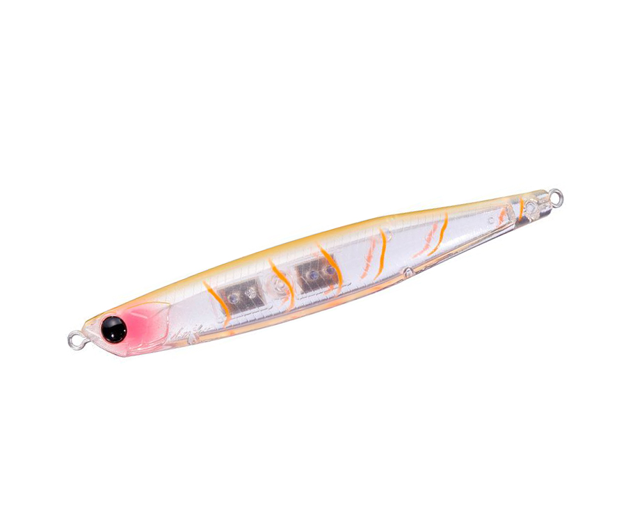 OSP Bent Minnow 76F / 86F / 106F – безлопатевий плаваючий воблер унікальної конструкції від знаменитої японської компанії Osprey Spiritual Performer (OSP). Вузьке довге тіло воблера має поздовжній вигин, причому черевний трійник розташовано всередині вигину. Лопатка в приманки відсутня. Такі конструктивні особливості визначають гру O.S.P Bent Minnow і правила ловлі на приманку. Цей воблер не виділяється особливими польотними якостями, але не цього домагався виробник, головне – його гра! Приманку оснащено спеціальною балансувальною системою з прямокутних свинцевих пластин, розташованих посередині тіла воблера. Їх призначено для забезпечення правильного положення приманки після приводнення, а також балансування її рухів під час ривкового проведення. Воблер OSP Bent Minnow 76F / 86F / 106F обладнано двома найгострішими та дуже надійними трійниками Owner. Петлі та завідні кільця також не викликають нарікань, оскільки не іржавіють та досить міцні. Колірна гама воблера складається з близько 20 забарвлень. Майже всі окраси приманки напівпрозорі, тому всі нутрощі воблера добре видно на просвіт. Складно назвати найробочіше забарвлення — ловлять усі. Пластикову приманку O.S.P Bent Minnow розроблено для ривкового проведення, і на рівномірному вона майже не працює. Зате на ривках воблер настільки багатогранний, що допускає найнезвичніші комбінації ривків, потяжок із паузами та іншими елементами ривкового проведення. Водночас гра приманки настільки різноманітна та реалістична, що спокушає на клювання як активного, так і найпасивнішого хижака. Імітуючи пораненого малька, воблер розташовується на поверхні так, що його спинка перебуває над водою. Під час ривків він то пірнає, то робить ривок убік, то хаотично коливається. Загалом приманка походить на поранену верховодку чи невеличку плітку. Не пропустять цей воблер жерех, що вийшов на полювання, великий котловий окунь та судак, що жирує біля поверхні. Але головна його мета – це щука! O.S.P Bent Minnow відмінно працює по зубастій хижачці на мілководді як навесні та влітку, так і восени до самого льодоставу. Щука, помітивши воблер, дуже часто піднімається за ним навіть зі значної глибини. Азартні любителі поверхневої ловлі, які цінують можливість спостерігати подробиці щучої атаки, одного разу розловивши цю приманку, уже ніколи не забувають покласти її у свою коробку з воблерами.