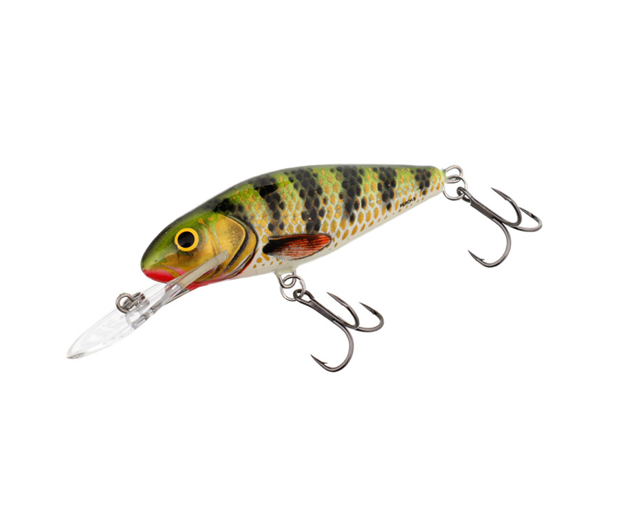 Salmo Perch - популярний кренкбейт, з дуже активною грою. Багато рибалок віддають перевагу Perch, вважаючи, що цей воблер - найкраща імітація окуня. Для лову спінінгом найчастіше використовують мілководний варіант (SR) та плаваючу версію (F). Плаваюча версія - класичний кренкбейт. Ефективний при повільній проводці з випадковими паузами та ривками вершинкою спінінга. Мілководна версія - звичайний твічбейт - ідеальна приманка для мілководних та зарослих водоростями місць. Найкраща гра виходить при досить довгих протяганнях вудлищем та з постійною підмоткою жилки котушкою, щоб уникнути її ослаблення. При використанні цього методу, приманка рухається з боку в бік у верхніх шарах води, часом спливаючи до поверхні. Такий спосіб анімації, при якому роблять випадкові паузи, є привабливим для хижої риби. Perch глибоководного виконання (SDR) - спеціалізована приманка. Велика лопата зменшує довжину її закидання спінінгом, тому цей варіант більше рекомендується для тролінгу. Величезні глибини, які можуть досягти ці приманки (наприклад, Perch 14 SDR заглиблюється до 12 м), дозволяють їм увійти в когорту лідерів серед тролінгових приманок. Можна сміливо сказати, що Perch - компактна та дуже ефективна приманка для лову великих хижаків. При цьому вона дозволяє зробити дальній кидок та володіє швидким заглибленням. Ця приманка доступна в різних забарвленнях. Її можна використовувати при будь-яких умовах та на будь-яких водоймах.
