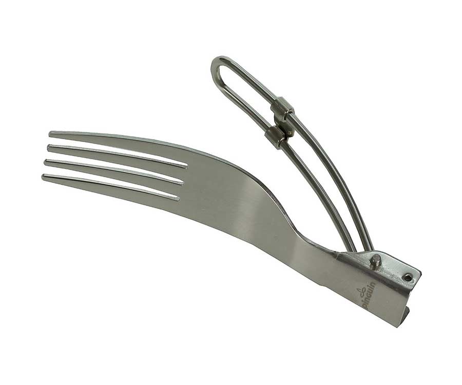 Вилка Pinguin Fork Steel – туристична виделка, що складається. Її виготовлено з міцного та практичного матеріалу – нержавіючої сталі 18/8. Столове приладдя має спеціальний замок із захистом від випадкового відкриття. Форма Pinguin Fork Steel ергономічна, є можливість підвішувати виделку на карабін. У комплекті зручний нейлоновий чохол.