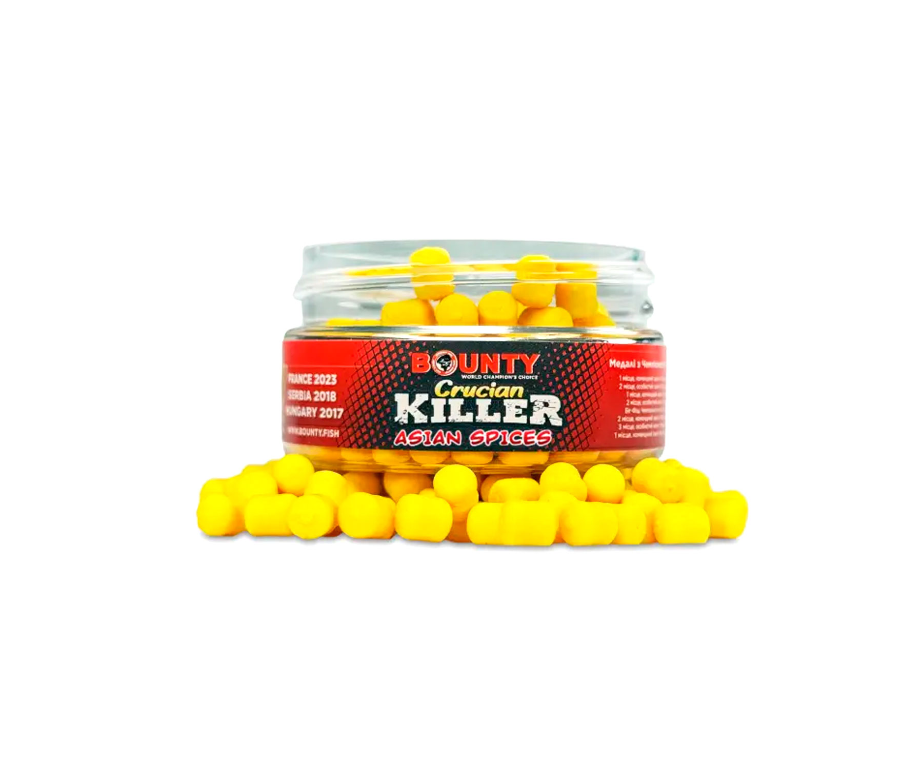 Бойл Bounty Wafters Crucian Killer — це міні-вафтерси розміром 4/6 мм з легкою плавучістю, призначені для лову карася з використанням невеликих гачків. Вони представлені в різних ароматах, включно з N-Butyric, Honey, Hemp, Caramel/Vanilla, Black Coffee і Asian Spices. Ці насадки були розроблені 2024 року для змагань, де виникла необхідність ефективно ловити карася. Продукція Bounty створена триразовими чемпіонами світу з коропового лову, що гарантує високу якість і ефективність.