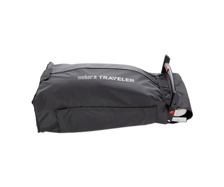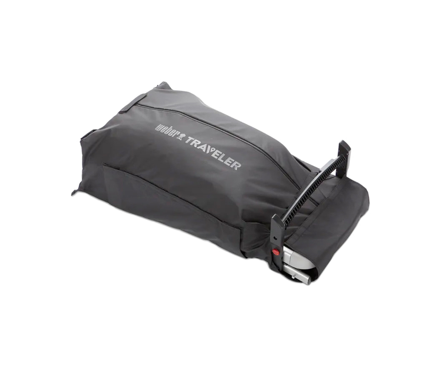 Чохол Weber Traveler щільно облягає гриль, не пропускаючи жир та інші забруднення, щоб інші речі в багажнику залишалися чистими. На чохлі є зручні кишені для інструментів, ще його можна компактно скласти, якщо він не використовується за призначенням.