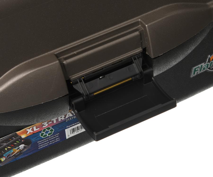 Ящик Flambeau Classic 3-Tray XL призначено для того, аби зробити вашу риболовлю більш мобільною та комфортною. Його конструкція забезпечує простий і швидкий доступ до приманок і снастей. Модель ящика Flambeau 2137B виготовлено з ударостійкого пластику за технологією Zerust, що запобігає появі іржі на металевих деталях інструментів і фурнітурі приманок. Зручна ручка, надійний замок, наявність бічних планок для підвішування приманок та інструменту, а також значна місткість перетворює цю модель на одну з найбільш практичних і зручних у використанні.