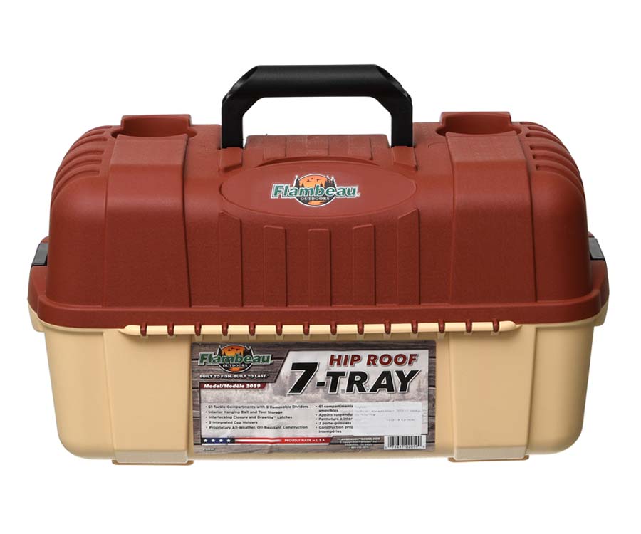 Риболовний ящик Flambeau Hip Roof 7-Tray може похвалитися найбільшою місткістю з усіх представлених на ринку ящиків аналогічної конструкції. Ящик Flambeau 2059 має 7 висувних полиць з 61 окремим відділенням для індивідуального зберігання риболовних снастей, які відповідають усім вашим потребам.