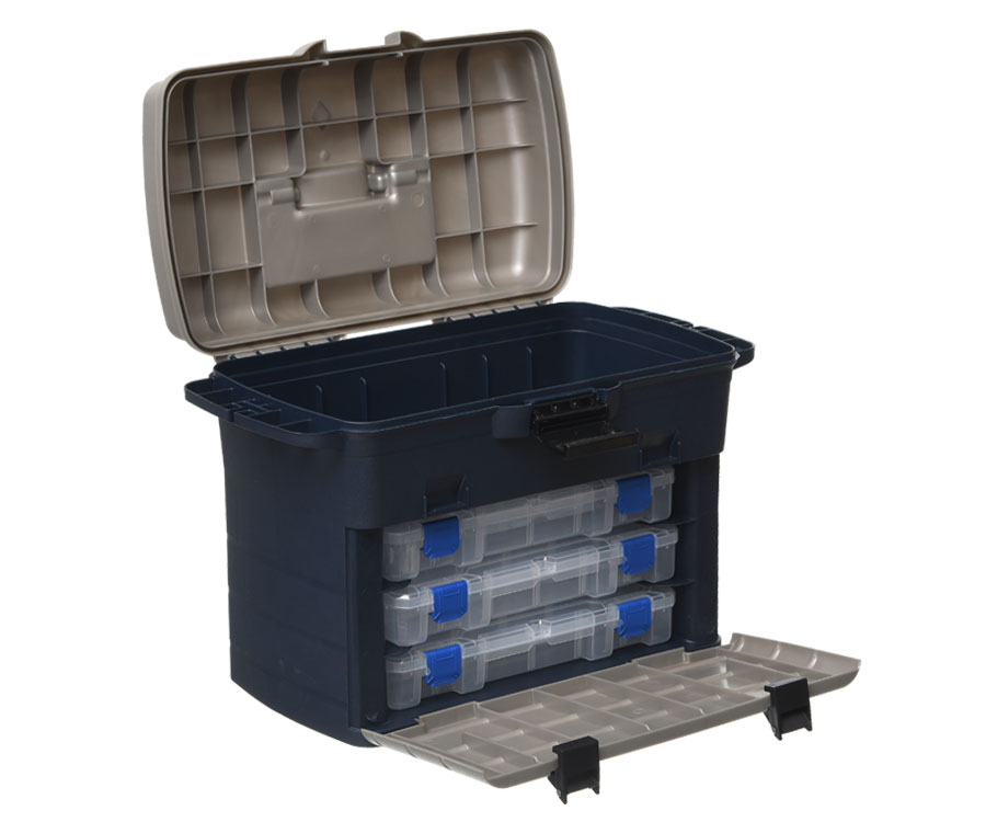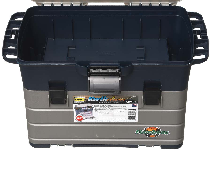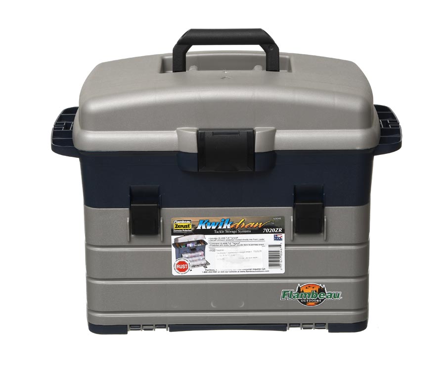 Flambeau Zerust Front Loader 7020ZR – ідеальна система зберігання і транспортування риболовних снастей під час ловлі з човнів, пірсів, берегової риболовлі. Цей ящик слугуватиме вам довгі роки, захищаючи ваші інвестиції за допомогою запатентованої антикорозійної технології Zerust. Назва ящика-станції Flambeau 7020ZR Front Loader Zerust пояснює особливості його конструкції і поділу простору для зберігання та перенесення рибальських снастей, приманок та інструментів. Коробки в базовому боксі розташовані за принципом шухлядок у письмовому столі. Усього є три таких контейнери – це коробки Flambeau 4006. Кожна з них усередині розділена на більш дрібні відділення та має прозору кришку на защібках. У верхній частині теж є простір для зберігання, який можна комплектувати коробками невеликого розміру. Цей відсік також фіксується надійною защібкою. За надійність кріплення основних контейнерів відповідає пара запірних механізмів на передній стороні станції. Вся конструкція ящика Flambeau 7020ZR виготовлена з якісного ударостійкого пластику, який надійно захистить ваші приманки та інше рибальське спорядження від пошкоджень і забруднень. Розміри: 44,1х24,8х32,1 см.