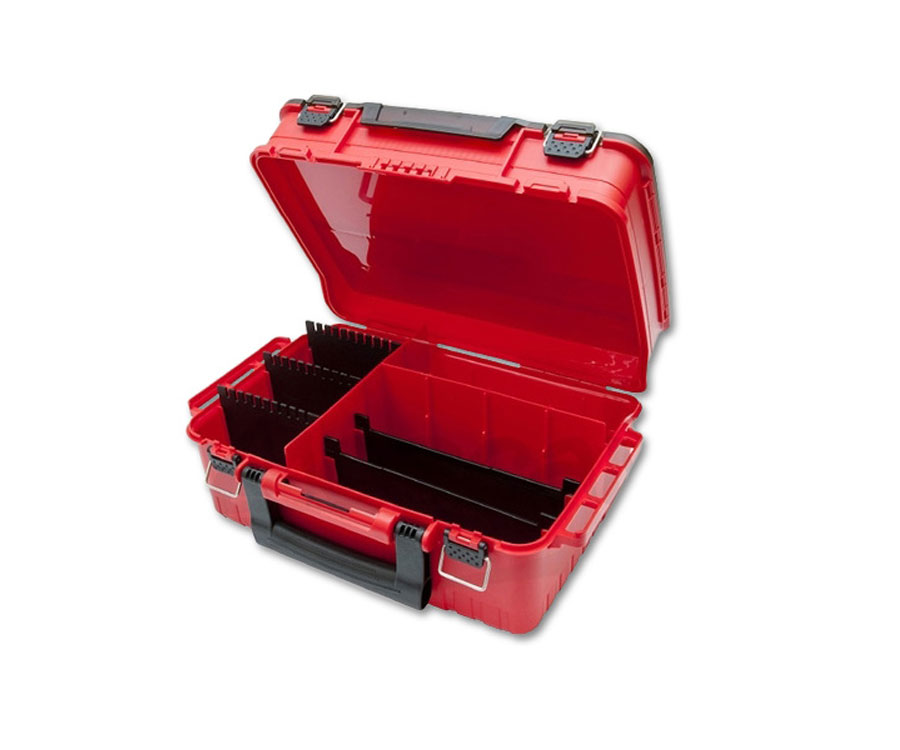 Meiho Versus VS-3078 - ящик для приманок і рибальських приладь, виконаний з легкого ударостійкого пластику. Має два великих відділення, розділених знімними перегородками. Обладнаний білою кришкою, міцними надійними засувками, вентиляційними отворами. Габаритні розміри - 430х295х186 мм.Характеристики Versus VS-3078: Додаткова система фіксації кришок, що оберігає від випадкового відкривання ящика при транспортуванні- Гнучкий і міцний ABS-пластик- Противоковзні кільця на днищі, що перешкоджають ковзанню по гладких поверхнях- Глибина нижнього відсіку (128 мм) дозволяє розмістити котушку- Знімні роздільники нижнього відсіку виконані таким чином, що на них горизонтально можна розмістити коробку VS-3010ND або VS-3010NDM- Три знімних роздільника нижнього відсіку забезпечені прорізами для кріплення приманок за трійники, або в цьому відсіку можна розмістити до трьох коробок SFС-серії розміру L- Нижній відсік дозволяє розмістити до 5-ти коробок VS-820, VS-820ND, VS-820NDM- Глибина верхнього відсіку 54 мм- Верхній відсік укомплектований 11 роздільниками двох розмірів, причому «мікросітка» для їх установки дозволяє раціонально використовувати всі 100% обсягу- Геометрія верхнього відсіку дозволяє встановити в нього більш дрібні коробки для приманок типу VS-318, VS-388, водонепроникні коробки WG-3, WG-6, WG-9 або будь-які коробки серії Meiho SFC розміру LL- Ящики серії VS-3078 виконані в яскраво-червоному, чорному, зеленому і жовтому кольорах з незмінно білосніжною кришкою- Корпус Meiho VS-3078 надійно захищений ребрами жорсткості з додатковим кронштейном для розміщення ножиць, щипців або наплечного ременя.