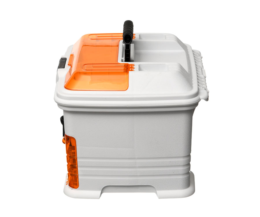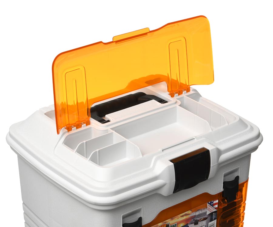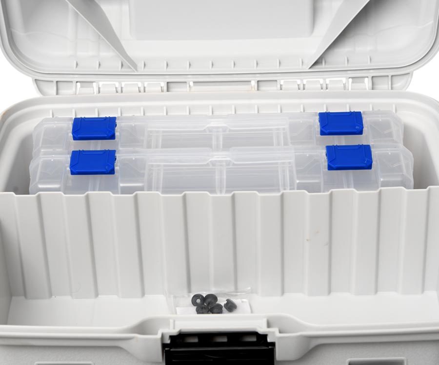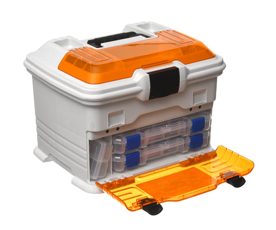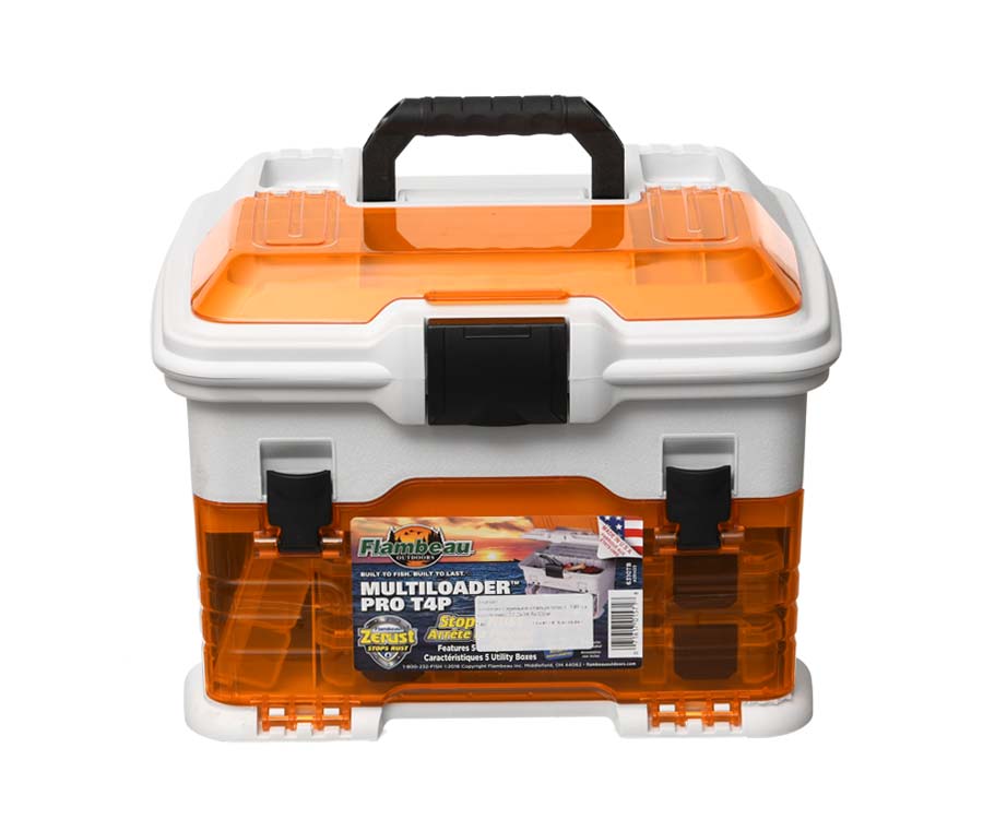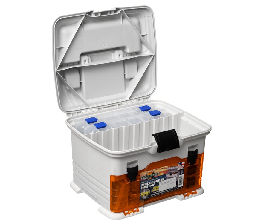 Ящик-станція Flambeau T4 Pro Multiloader – чудовий вибір для риболовів, які люблять тримати снасті та приманки в повному порядку. Завдяки інноваційному матеріалу та ексклюзивній технології Zerust забезпечено багаторічний захист рибальського спорядження від корозії. Ящик Flambeau T4 Pro Multiloader має три фронтальних висувних коробки з регульованими відсіками, здатних розмістити велику кількість приманок і корисних дрібниць, необхідних на риболовлі. Зверху станції є заглиблений відсік, у якому розташовуються дві коробки з відділеннями та великий відсік, у якому можна розмістити котушку. Зверху біля складаної ручки розташовано 6 відділень для швидкого доступу до найнеобхідніших термінальних снастей і приладдя, відділення оснащено прозорою кришкою. До комплекту входять: 1 коробка Tuff Tainer 1002 Divided; 2 коробки Tuff Tainer 3003 Divided і 2 коробки Tuff Tainer 3003 Divided.