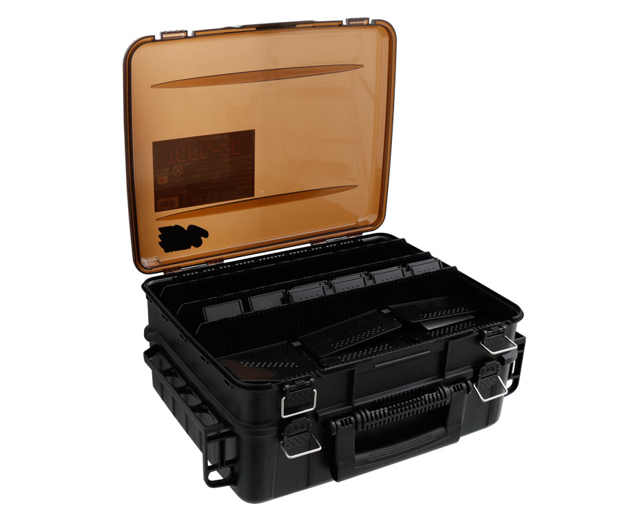 Ящик-станція MEIHO VS-3080 вже зарекомендував себе як місткий, міцний, надійний і довговічний, йде з прозорою потовщеною кришкою з зміцненого полікарбонату, крізь яку видно вміст верхнього відділення. Дрібний \ "крок \" напрямних ребер і знімні роздільники дозволяють спланувати простір максимально точно. Глибоке нижнє відділення має знімні роздільники - підставки для штучних приманок: підвішуючи їх за трійники, ви захищаєте їх від пошкоджень, випадкових ударів і зачепів. Прибравши роздільники простір можна використовувати для коробок моделі VS-820. Обидва відділення мають застібки з міцними металевими скобами. Верхнє відділення також фіксується додатковою засувкою посередині, навіть якщо Ви, беручись за ручку, забули про замки, але хоча б зачинили кришку, це захистить відсік від випадкового відкриття. Нижнє відділення також має додаткову фіксуючу застібку, яка фіксує кришку при піднятті ручки, і, таким чином, Ви захищені від випадкового відкриття цього відсіку. На зворотньому боці валізи є протиковзкі гумові деталі, які утримують чемодан на місці під час руху машини і човна. З боків є міцні скоби, в які можна для зручності вставити інструменти.