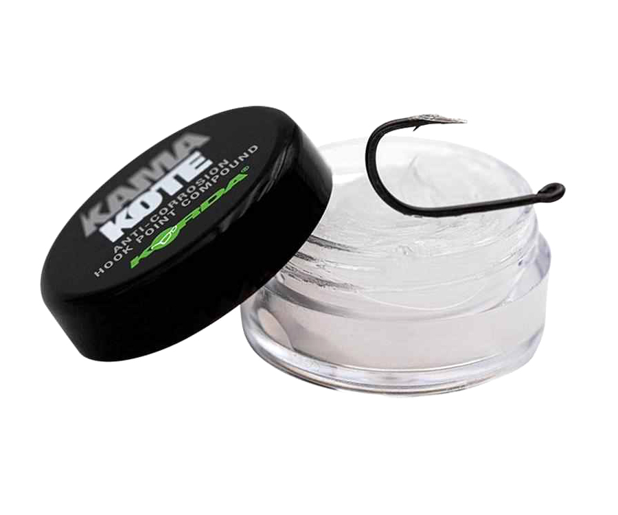Korda KamaKote Hook Point Compound – антикорозійне мастило для обробки заточеного вістря гачка, аби ваші надгострі гачки завжди залишалися в ідеальному стані. Цей продукт не містить нафтопродуктів, він прозорий у воді й не має запаху. Мастило для гачків Korda KamaKote Hook Point Compound має чудову водостійкість і дуже довго тримається на гачку.