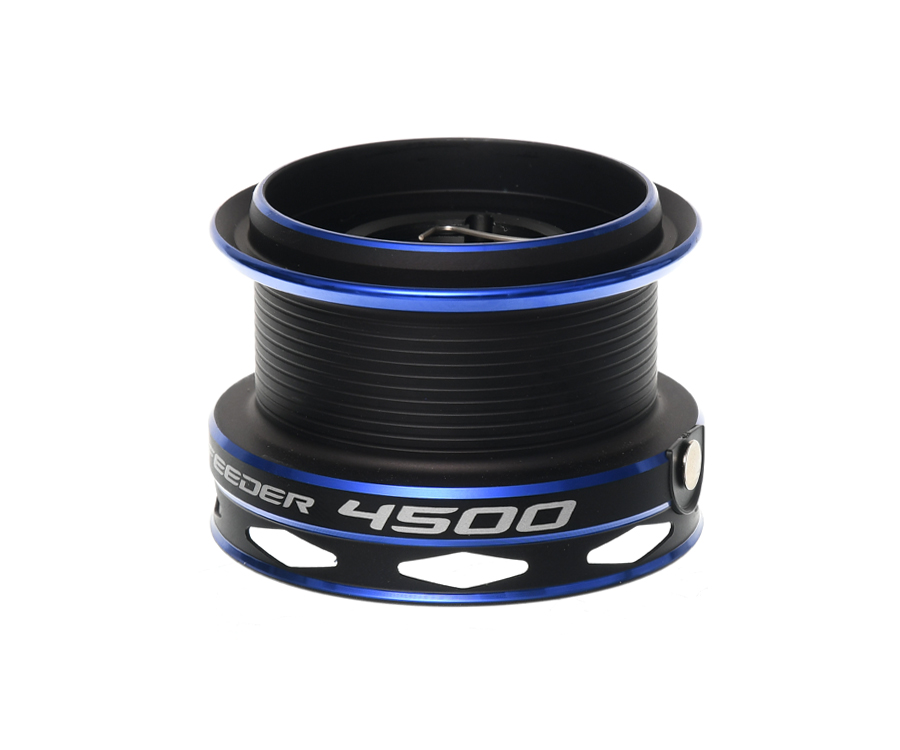 Запасна алюмінієва шпуля до фідерної котушки Flagman Cast Master Feeder 5500 SI, яка цілком ідентична штатній. Шпуля має середню жилкоємність і вміщує 320 м жилки 0,25 мм. На ній встановлено круглу підпружинену металеву кліпсу з пластиковою підкладкою, яка не пошкоджує жилку під час кліпсування.