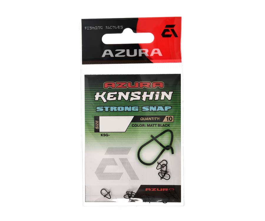 Azura Kenshin Strong Snap – надійні та міцні застібки-американки, які виготовлено з нержавіючого сталевого дроту найвищої якості. Великий радіус вигину застібки Azura Kenshin Strong Snap забезпечує необхідну свободу для повноцінної гри приманки, а темне антикорозійне покриття Matt Black – непомітність для риби. Чудово підійдуть для використання з джиговими приманками, а також блешнями, воблерами тощо. Доступність застібок Kenshin Strong Snap у різних розмірах з різним розривним навантаженням дозволить зробити правильний вибір як любителям лайтової ловлі, так і прихильникам важкого джигу та тролінгу.