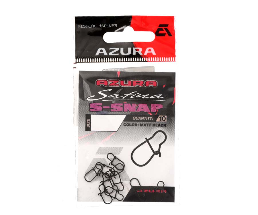 Azura Safina S-Snap – надійні та міцні застібки-американки, які виготовлено з нержавіючого сталевого дроту найвищої якості. Великий радіус вигину застібки Azura Safina S-Snap забезпечує достатню свободу для повноцінної гри приманки, а темне антикорозійне покриття Matt Black – непомітність для риби. Застібки чудово підійдуть для використання з воблерами, блешнями, джиговими приманками тощо, а також для виготовлення різноманітних риболовних монтажів. Доступність застібок Safina S-Snap в декількох розмірах із різним розривним навантаженням дає змогу зробити правильний вибір у різноманітних умовах ловлі.