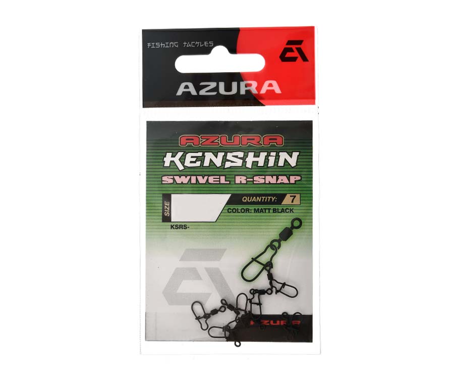 Застібка з вертлюгом Azura Kenshin Swivel R-Snap – надійна та міцна застібка-американка в поєднанні з класичним вертлюгом, які виготовлено зі сталевого дроту найвищої якості. Azura Kenshin Swivel R-Snap – важливий елемент монтажу для економії часу ловлі в разі заміни приманки або оснастки. Запобігає перекручуванню жилки під час ловлі активними та обертовими приманками, особливо на течії. Ідеально поєднується з джиговими приманками, блешнями, воблерами тощо. Також Azura Kenshin Swivel R-Snap чудово підійдуть для виготовлення різноманітних риболовних оснасток і монтажів як у лайтовій ловлі, так і у важкому джигінгу та тролінгу. Доступні в широкому спектрі розмірів із різним розривним навантаженням. Колір захисного покриття: Matt Black.