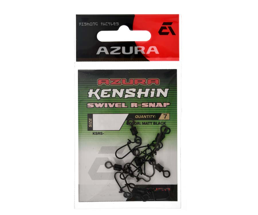 Застібка з вертлюгом Azura Kenshin Swivel R-Snap – надійна та міцна застібка-американка в поєднанні з класичним вертлюгом, які виготовлено зі сталевого дроту найвищої якості. Azura Kenshin Swivel R-Snap – важливий елемент монтажу для економії часу ловлі в разі заміни приманки або оснастки. Запобігає перекручуванню жилки під час ловлі активними та обертовими приманками, особливо на течії. Ідеально поєднується з джиговими приманками, блешнями, воблерами тощо. Також Azura Kenshin Swivel R-Snap чудово підійдуть для виготовлення різноманітних риболовних оснасток і монтажів як у лайтовій ловлі, так і у важкому джигінгу та тролінгу. Доступні в широкому спектрі розмірів із різним розривним навантаженням. Колір захисного покриття: Matt Black.