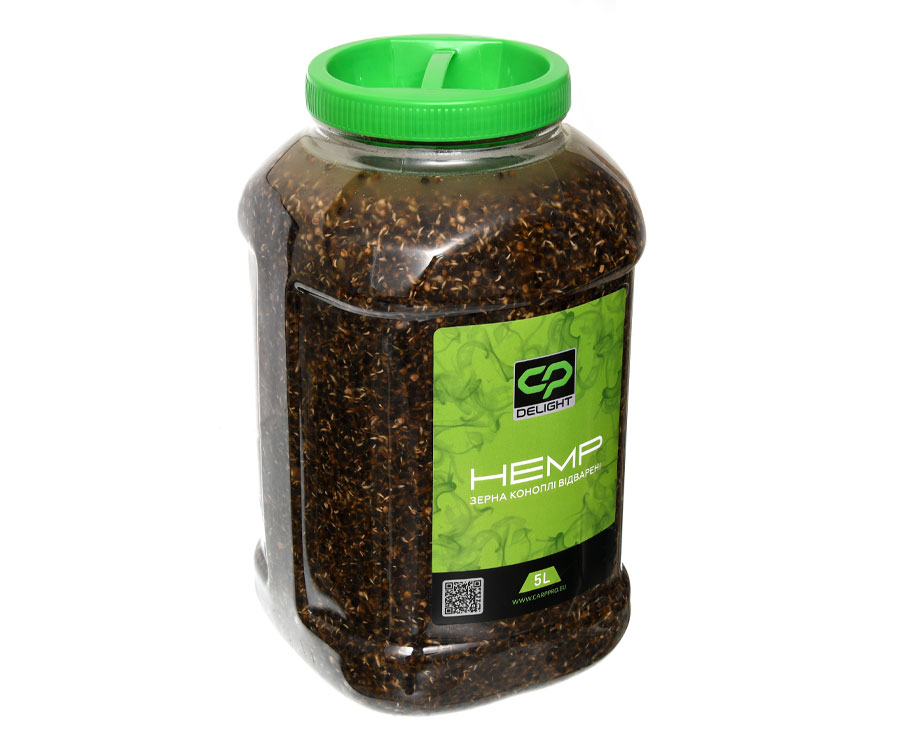 Carp Pro Delight Hemp – натуральні зерна конопель, які довго зберігають свої властивості завдяки спеціальній технології приготування. Під час варіння зерна виділяють привабливі для риб ефірні олії, мікроелементи та вітаміни, завдяки чому рідина, якою їх залито, є своєрідним природним атрактантом. CP Delight Hemp можна використовувати окремо, а також у поєднанні з бойлами, пелетсом і різними сумішами. Сумісні з будь-якими добавками, як сухими, так і рідкими. Варені зерна конопель Carp Pro Delight Hemp ефективні під час ловлі коропа, білого амура, карася, лина, ляща та іншої мирної риби. Склад: зерна конопель.