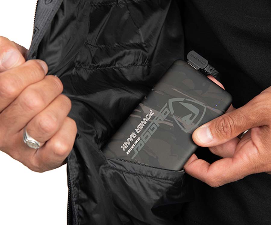 Жилет із підігрівом Fox Rage Heated Gilet – стильна фірмова безрукавка стьобаної конструкції Fox Rage з підігрівом від повербанка, яка зручна для використання як у місті, так і на природі. Зігрійтеся завдяки безрукавці Fox Rage Heated Gilet за будь-якої температури! Цей жилет у стилі пуховика має знімний капюшон на блискавці, еластичні шнурки на капюшоні та талії для ідеальної посадки, бічні кишені на флісовій підкладці + внутрішню нагрудну кишеню. Усі кишені на блискавці. Камуфляжне оздоблення Fox Rage всередині капюшона. Можна прати після виймання повербанка.
