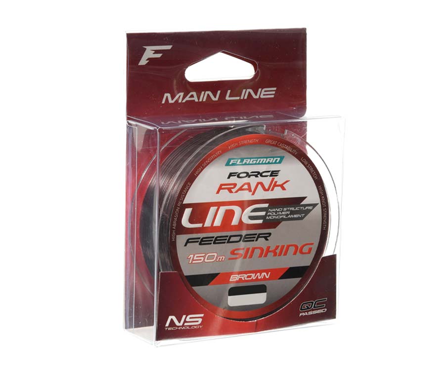 Flagman Force Rank Feeder Line – тонуча монофільна жилка для широкого кола риболовів, яку виготовлено за японськими технологіями з сучасних полімерних матеріалів. Її призначено для використання в якості основної жилки на фідерній снасті. Вона вирізняється гладенькою поверхнею і підвищеною жорсткістю, що дає змогу виконувати далекі й точні закидання. Жилка Flagman Force Rank Feeder Line має мінімальну розтяжність, стійкість до абразиву, високу міцність, зокрема й на вузлах, і практично нульовий ефект пам'яті. Спеціальне коричневе забарвлення чудово маскує її в товщі води та не відлякує рибу. Жилки Force Rank Feeder Line виготовляють у найбільш затребуваних діаметрах і розмотуванні 150 м. У їхньому виробництві застосовано нові наноструктуровані полімери та сучасні японські технології, тому ці жилки мають набагато кращі властивості та характеристики, ніж їхні попередники.
